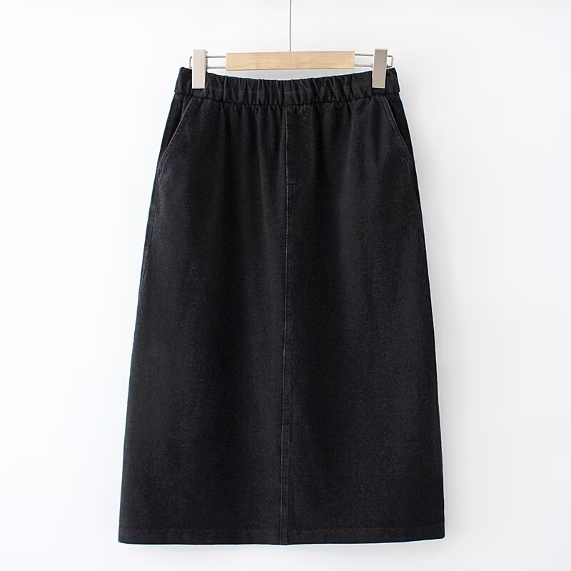 2025秋冬加绒加厚半身裙大码开衫裙松紧腰黑裙胖妹显瘦中长裙461