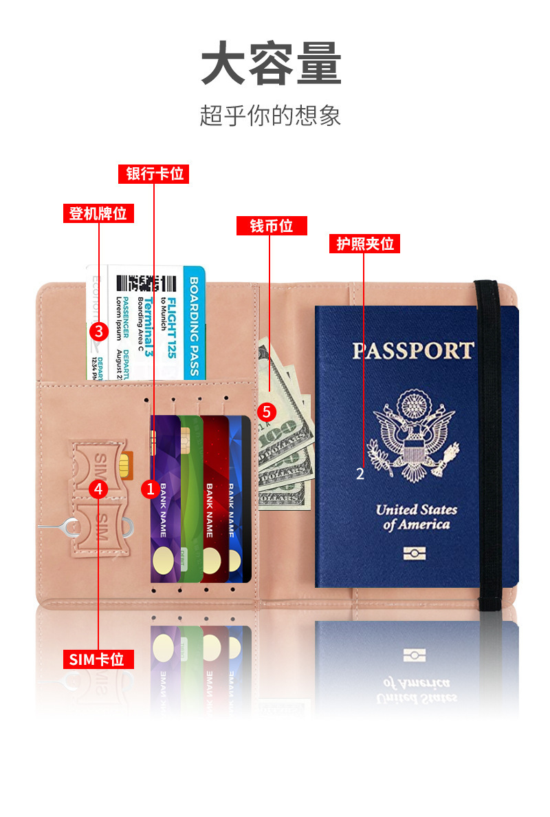 クロスボーダーRFID盗難防止パスポートケース PUレザーケース シンプルでおしゃれな多機能ドキュメントケース 海外旅行用パスポートケース