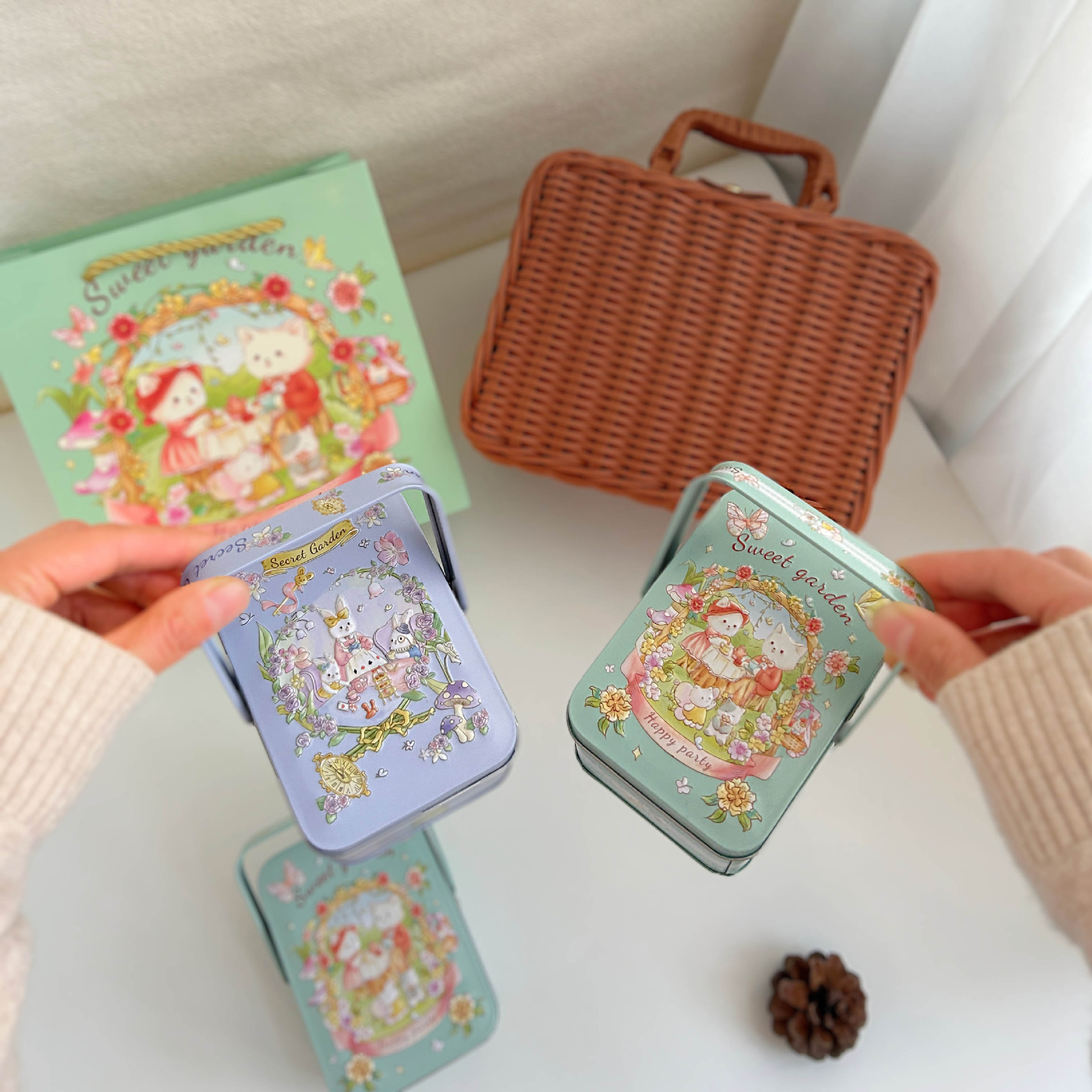 持ち運び可能なブリキ缶クッキー、金属製の缶、バニーラビット柄のキャンディー、チョコレート包装箱、製菓専用