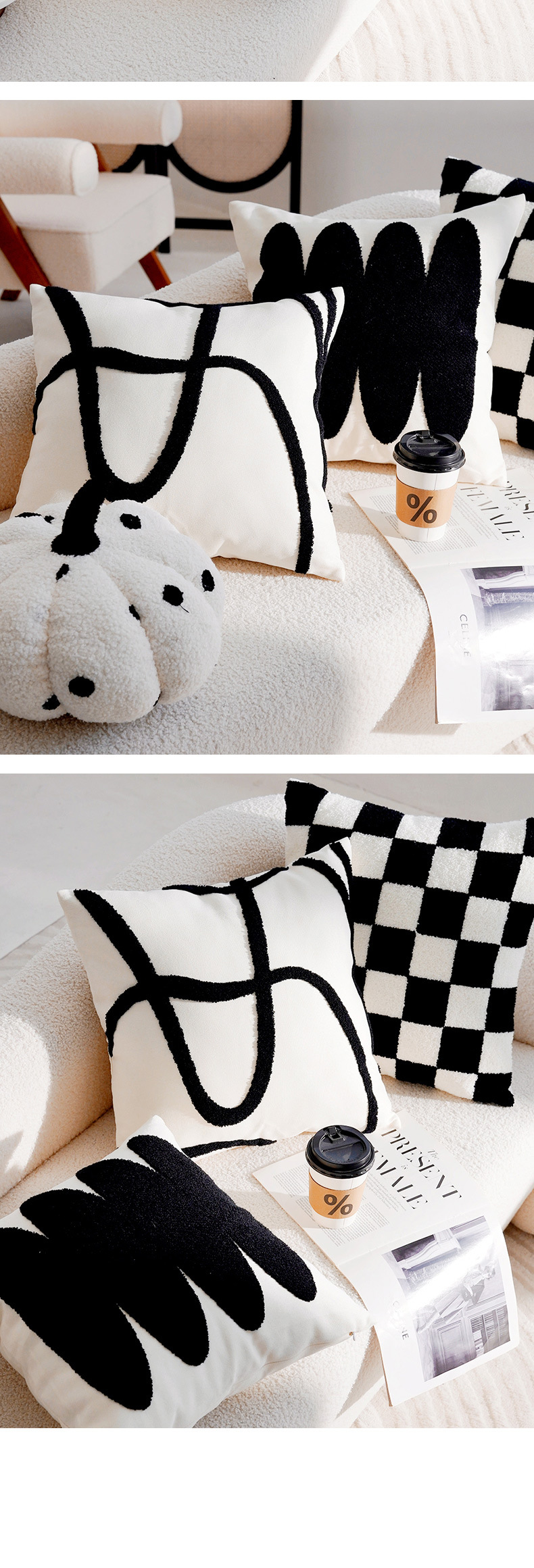 ソファー枕客間ins風幾何学シンプル白黒棋盤格クッション軽贅沢両面抱き枕芯なし