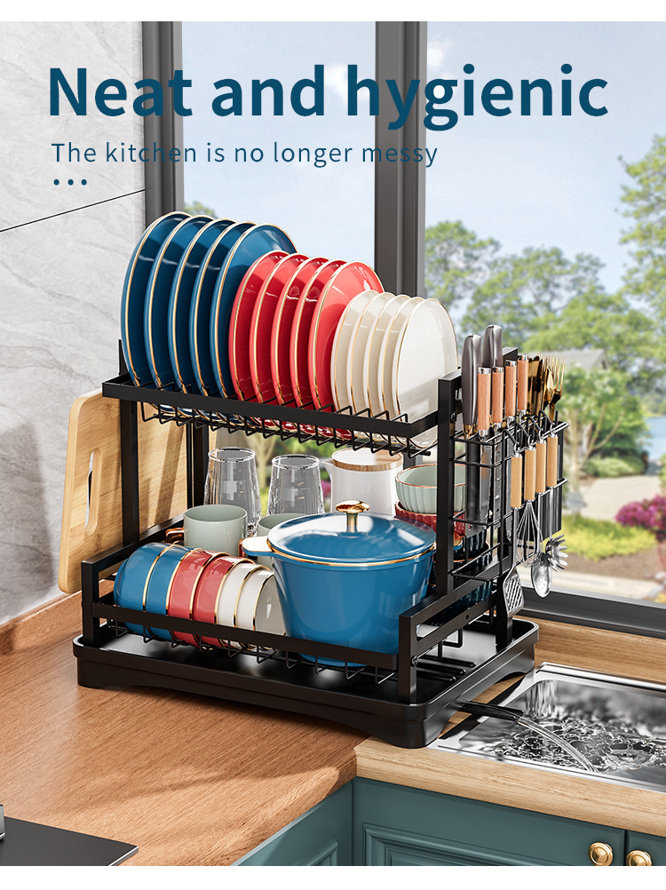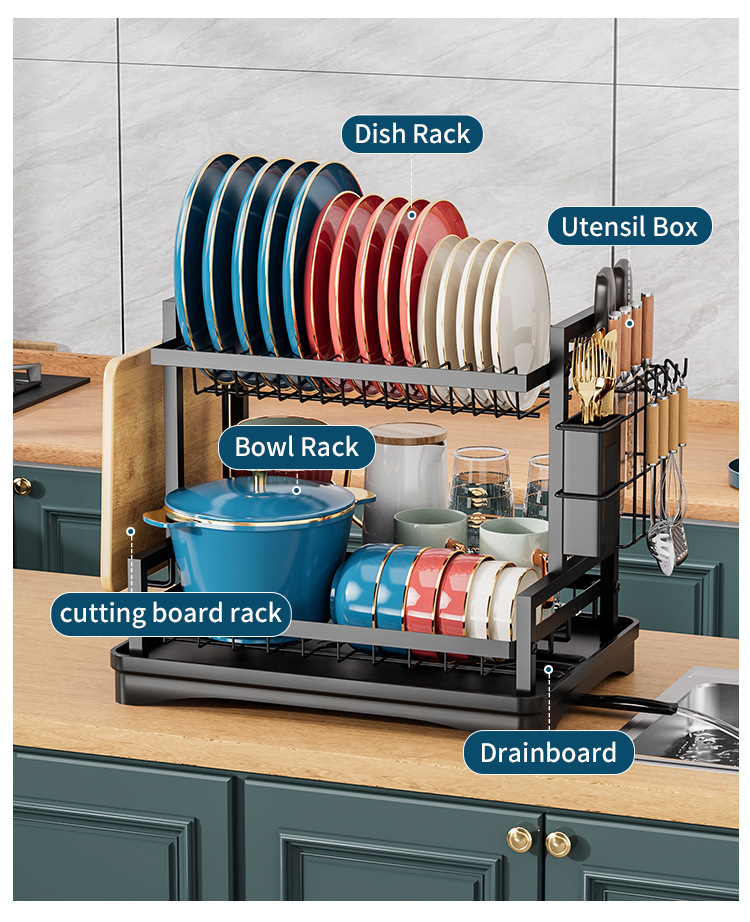 キッチン水切りラック、食器棚、鉄製箸立て、まな板置き、カウンタートップ食器収納ラック、キッチン収納
