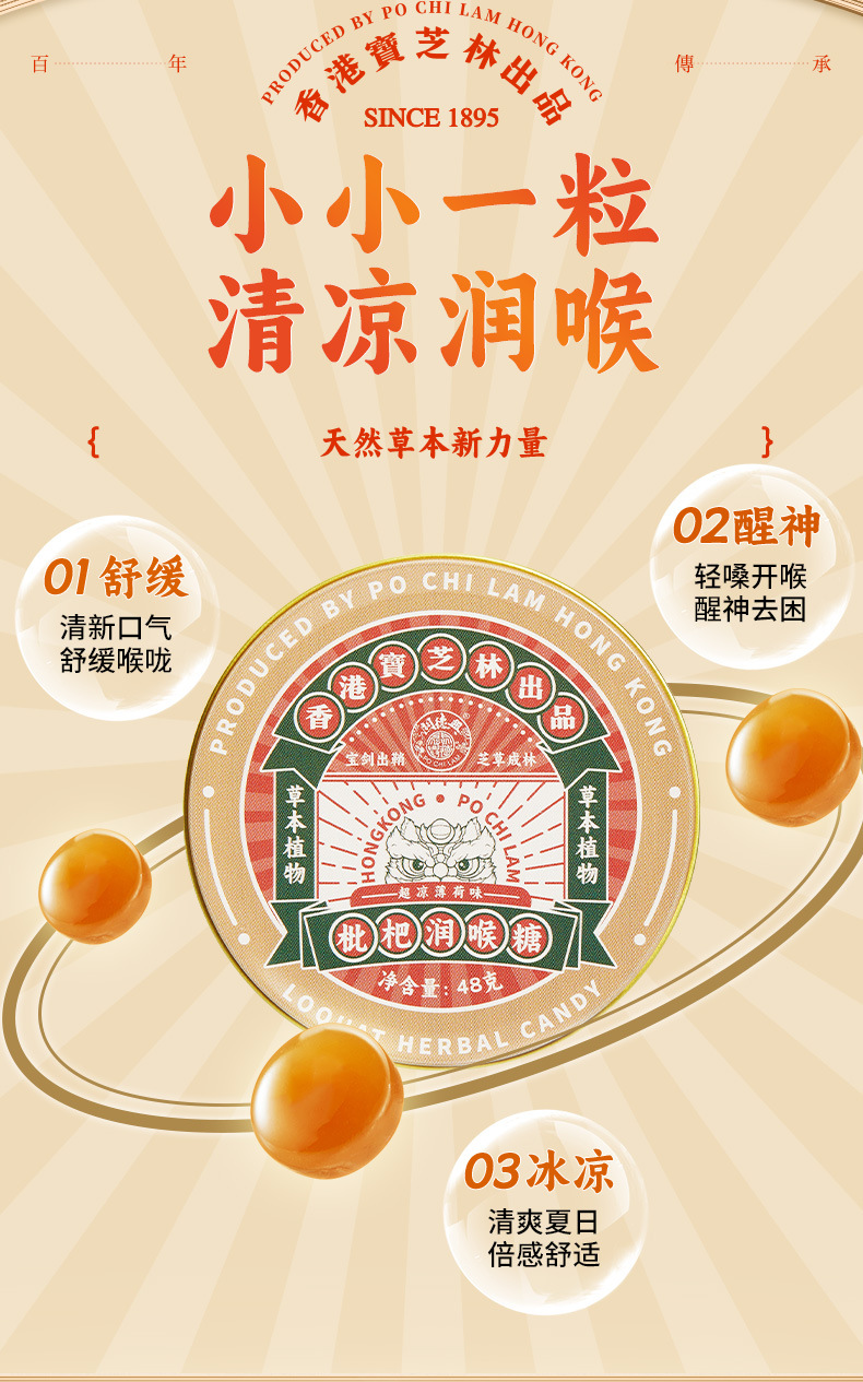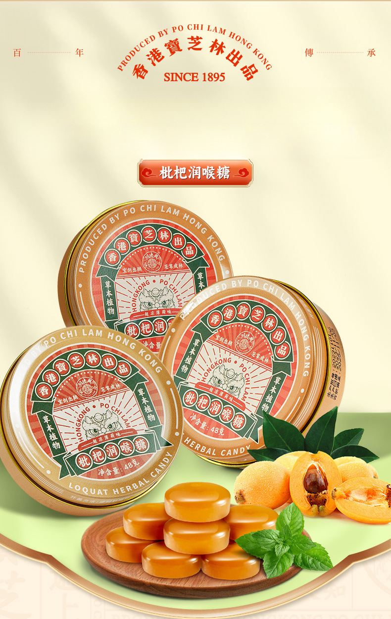 香港宝芝林枇杷のど飴、ミント枇杷、スイカズラのど飴、教師・アンカー向けキャンディスナック卸売