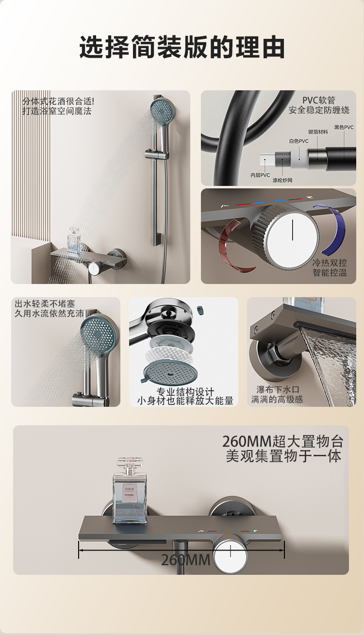 ガンアッシュシャワーフルセットシャワーセット浴室スーパーチャージデジタルディスプレイシャワースマートシャワーシャワーセット卸売