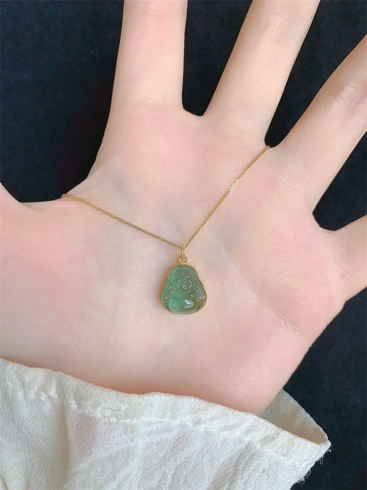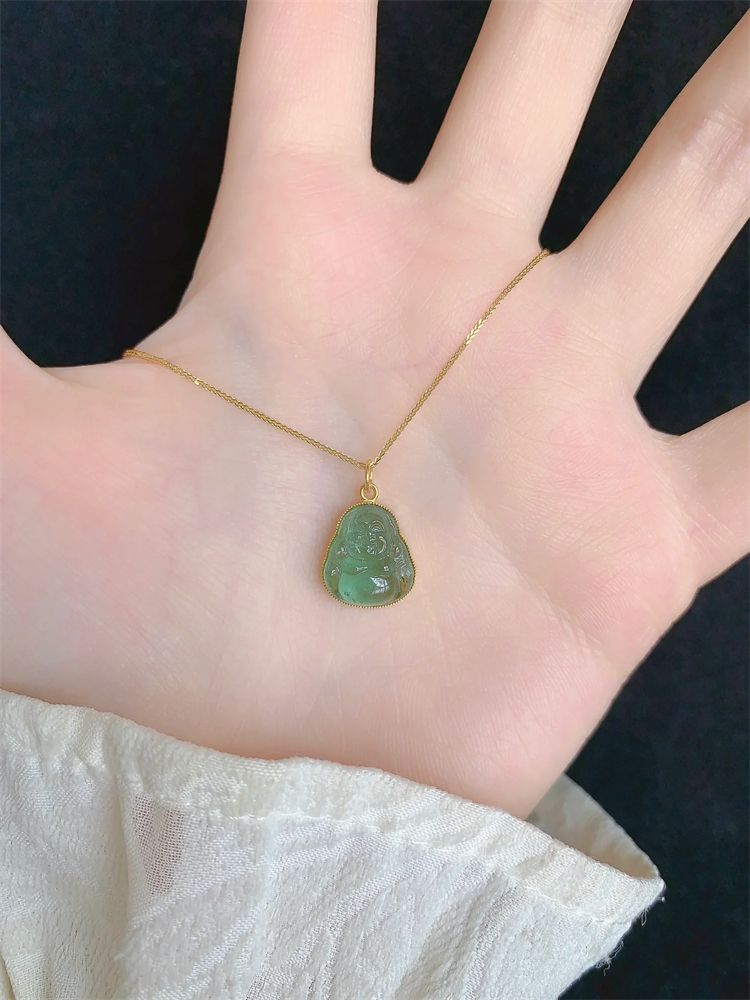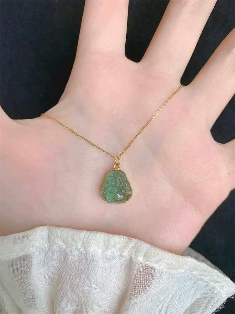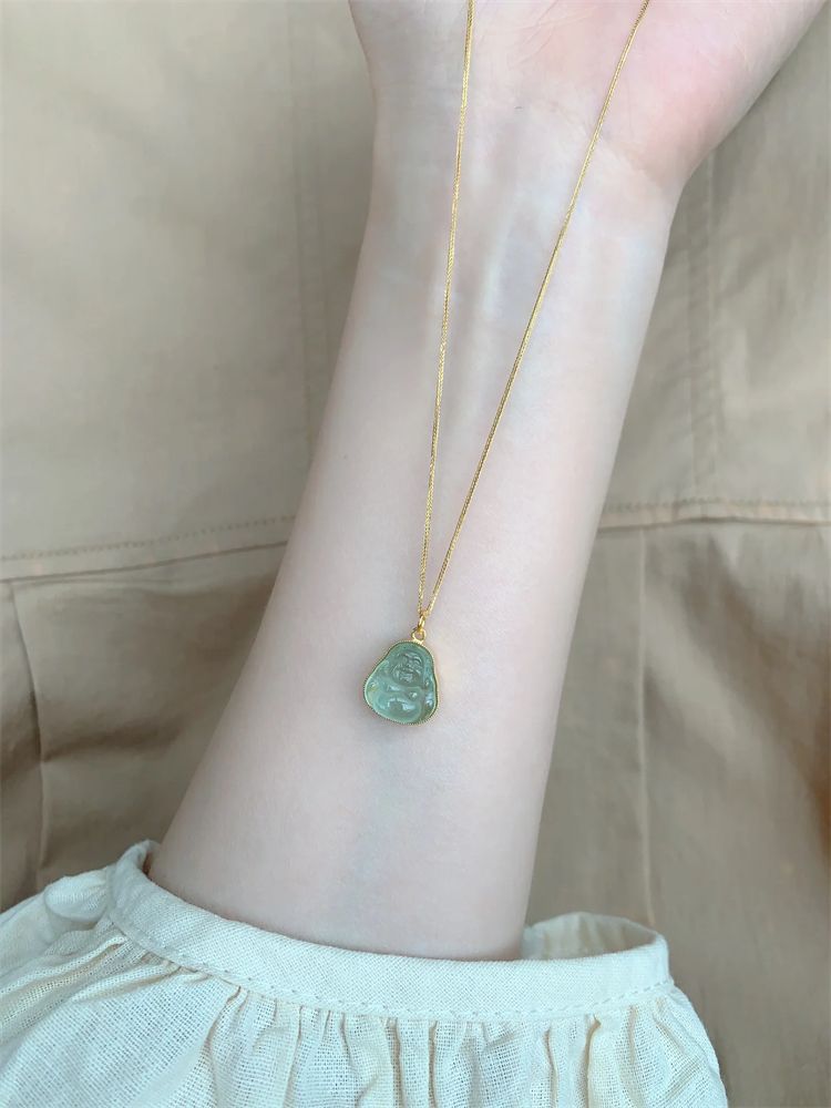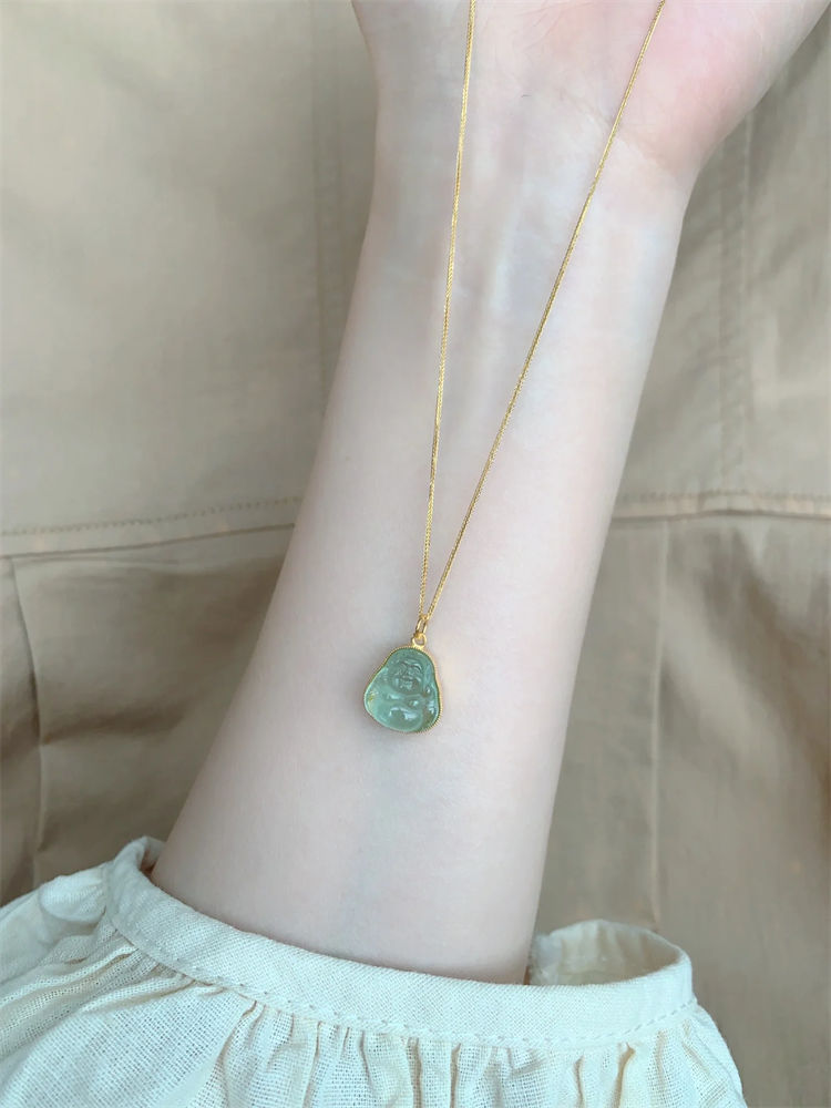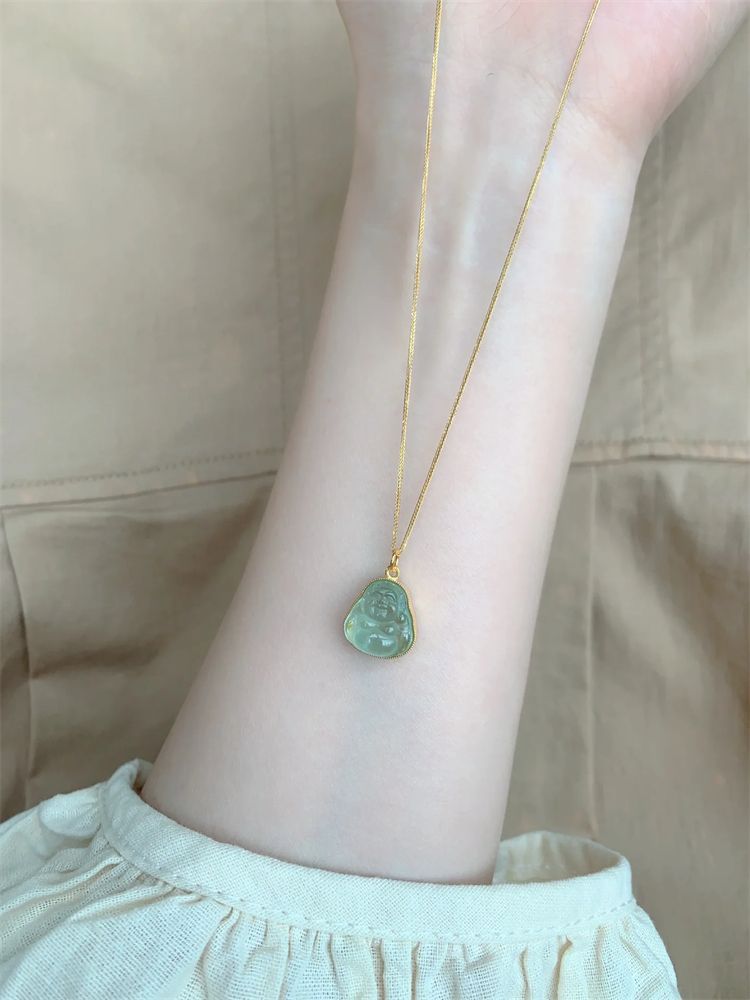 新中式高冰透玉佛公珍珠项链女国潮风气质时尚平安弥勒佛锁骨链