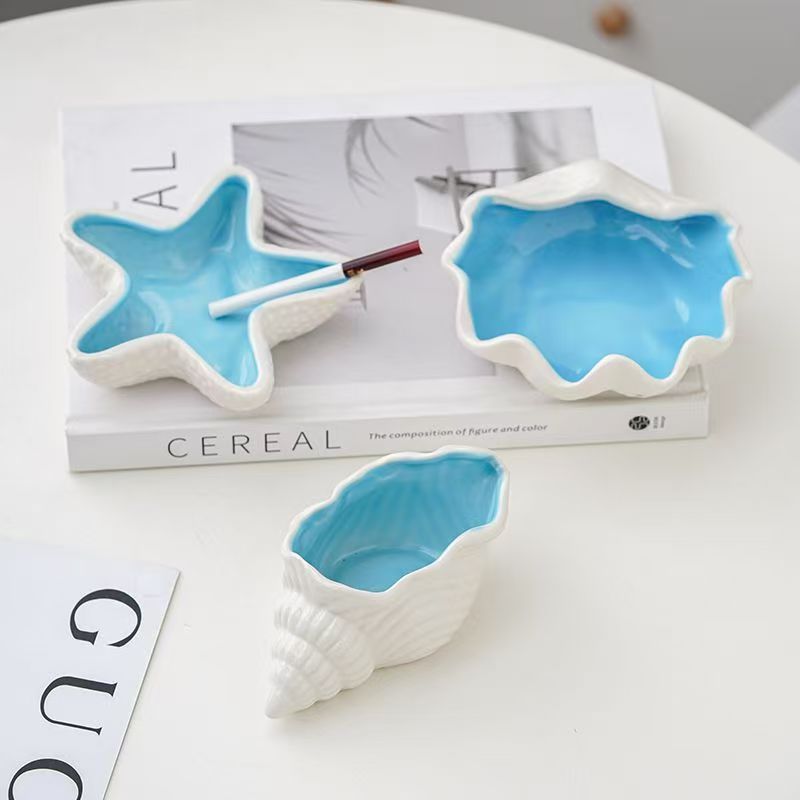 シンプルでクリエイティブなセラミック製のヒトデ・貝殻灰皿、オフィスやリビングの装飾品、工芸品、ジュエリーボックス