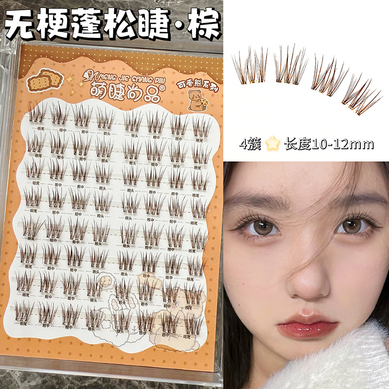 かわいいまつげ、茎のないふわふわまつげ、ブラウンサンシャイン、自然なふわふわママまつげ、魅力的なコミックフォトジェニックまつげ