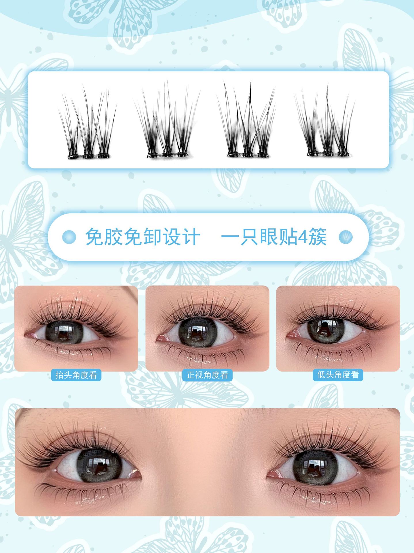 萌えまつげ尚品免接着剤自己接着6列全家福偽まつげ怠け者初心者単クラスタ免脱上鏡まつげ