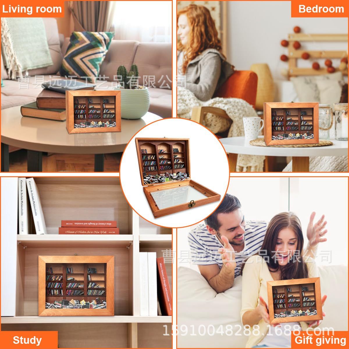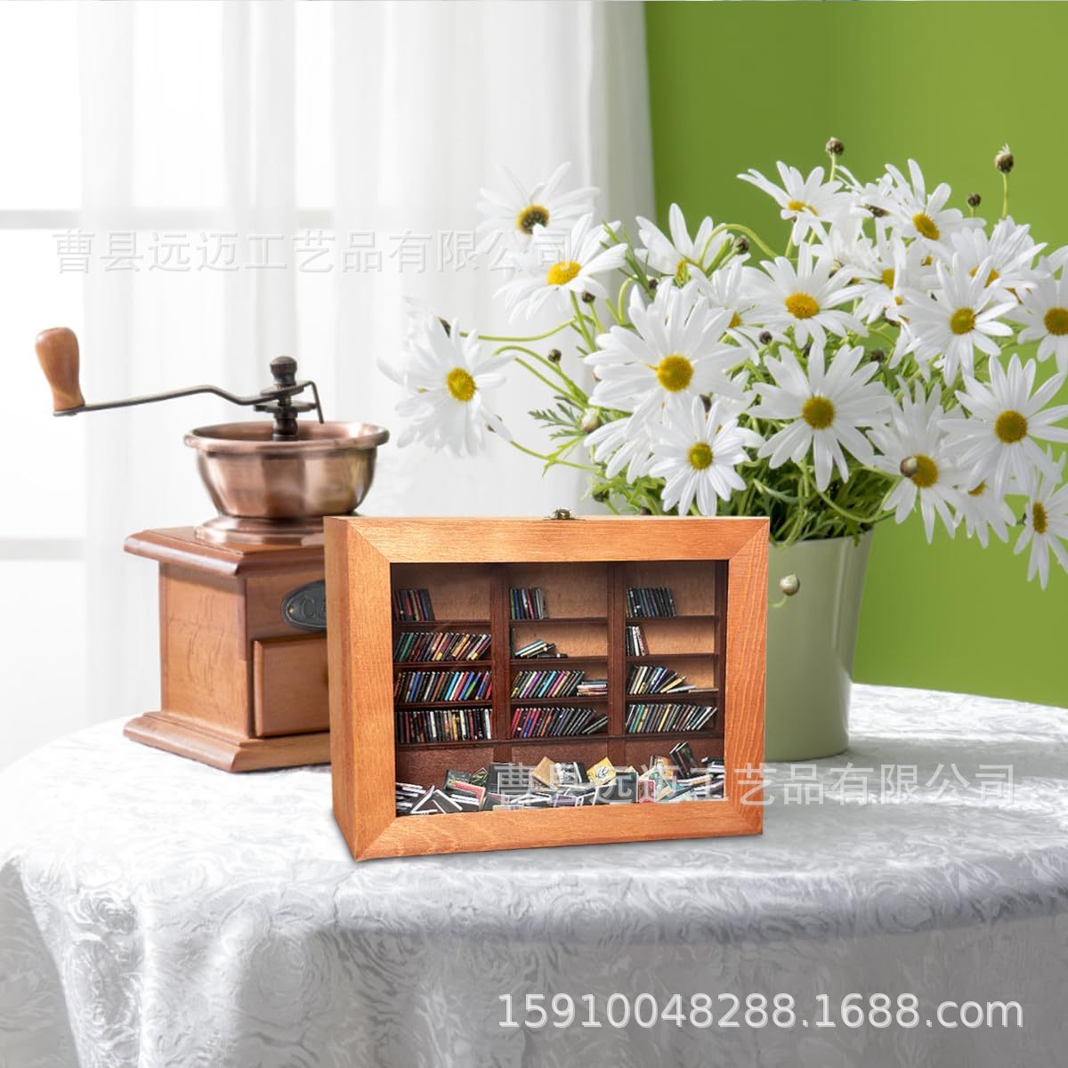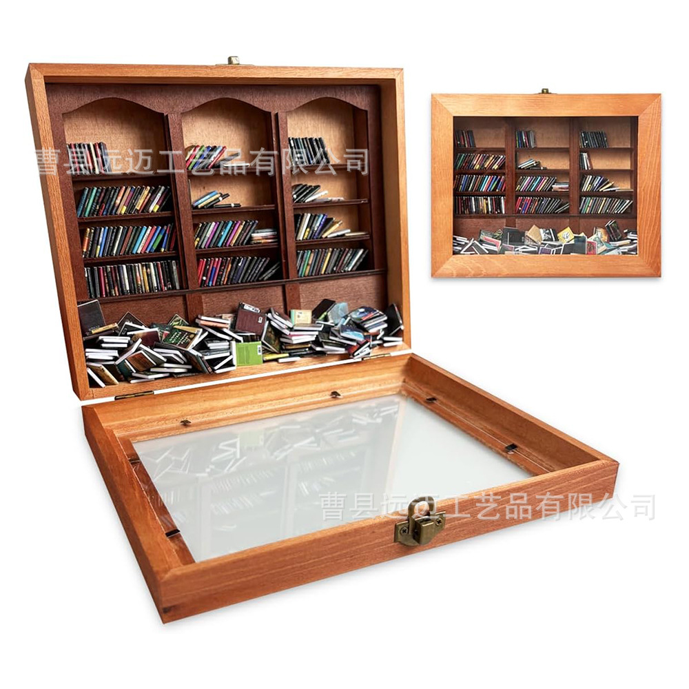 シェイクアウェイ木製本棚ミニブックディスプレイボックス本愛好家向け面白いギフトミニチュアデスクトップ装飾品