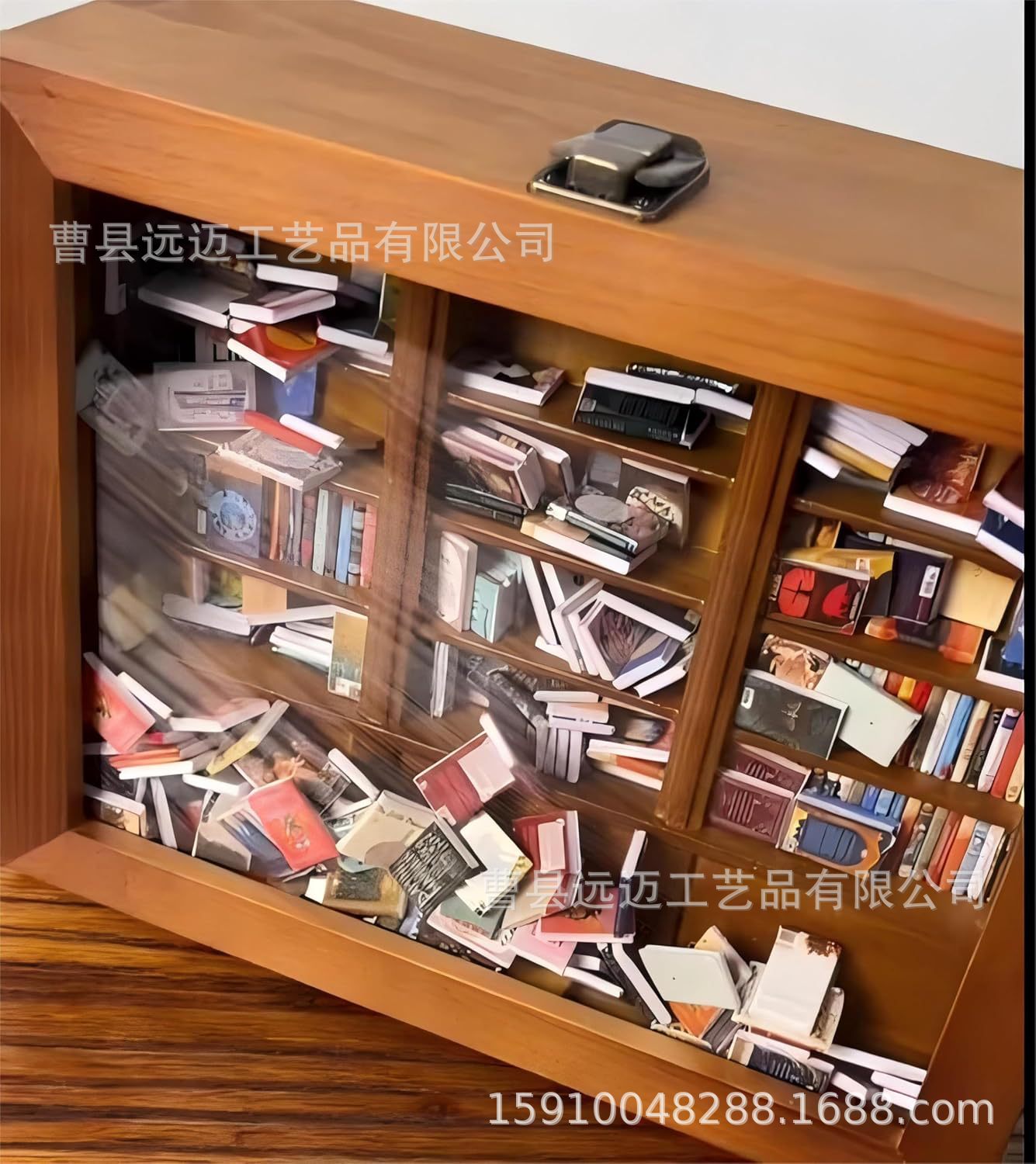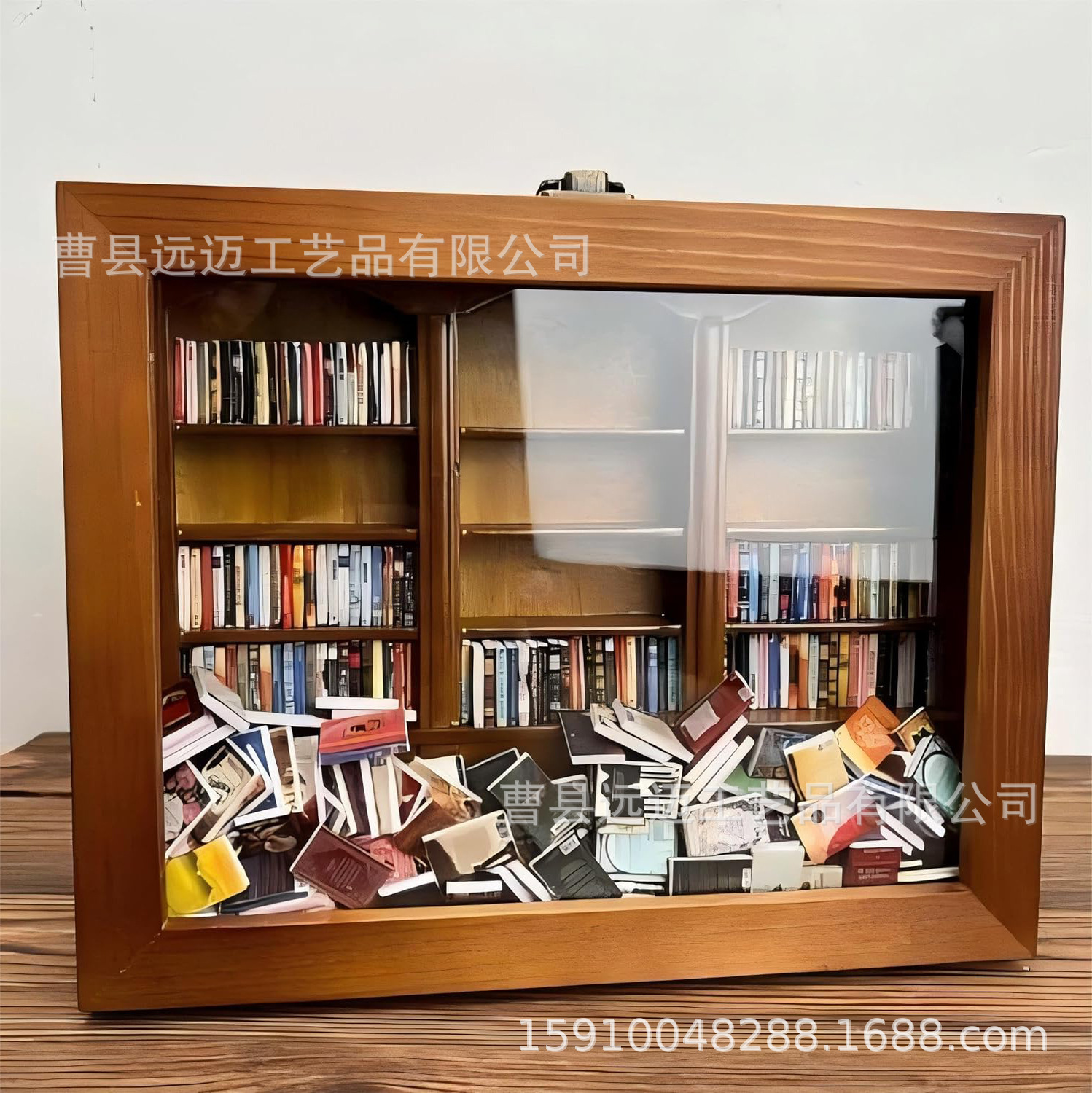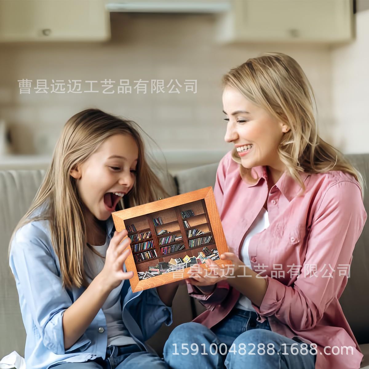 シェイクアウェイ木製本棚ミニブックディスプレイボックス本愛好家向け面白いギフトミニチュアデスクトップ装飾品