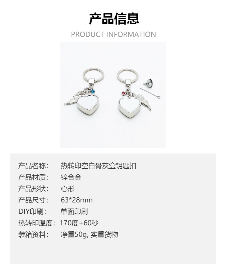 クロスボーダー热い贩売热転写印刷金属骨灰ボックスキーチェーン热い升华亜鉛合金キーチェーン空白片面印刷