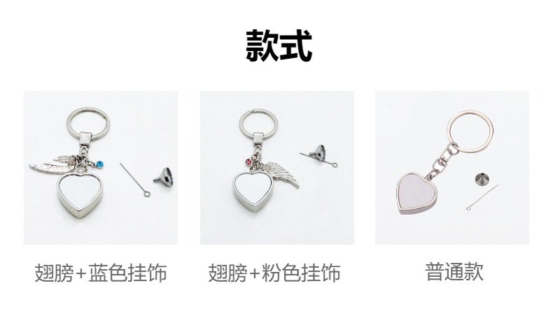 空白の遺灰ボックスキーホルダー + 翼 + ブルーのペンダント,空白の骨キーホルダー + 翼 + ピンクのペンダント,空白の骨キーホルダー - 通常のスタイル,銀