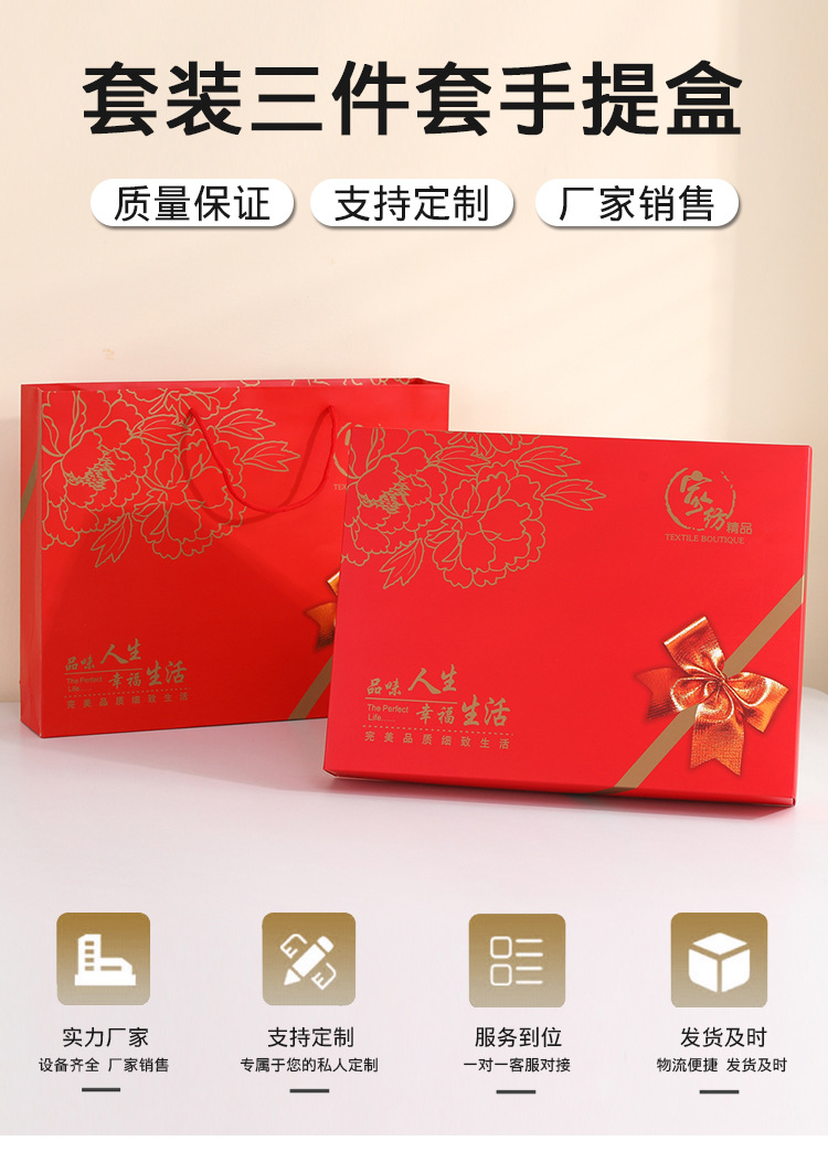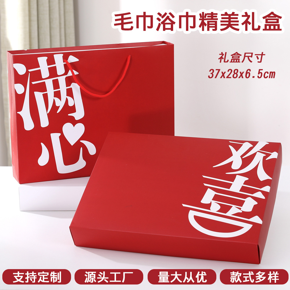 メーカー卸売り高級タオルバスタオル空箱三点セットプレゼント包装箱寿宴結婚式お土産赤