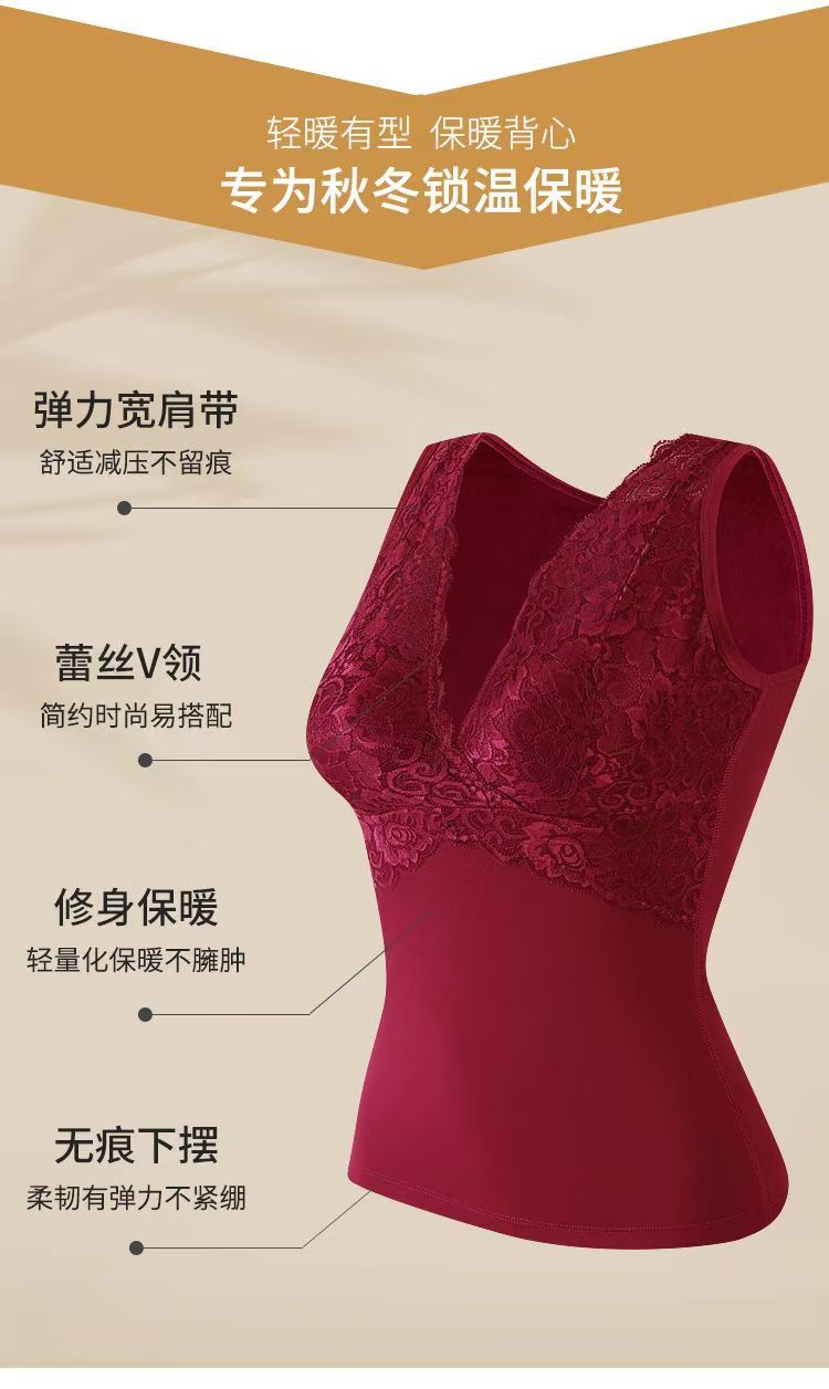 秋冬徳絨毛保温下着女性vネックレース美背厚さ両面研磨毛毛毛無痕発熱保温ベスト