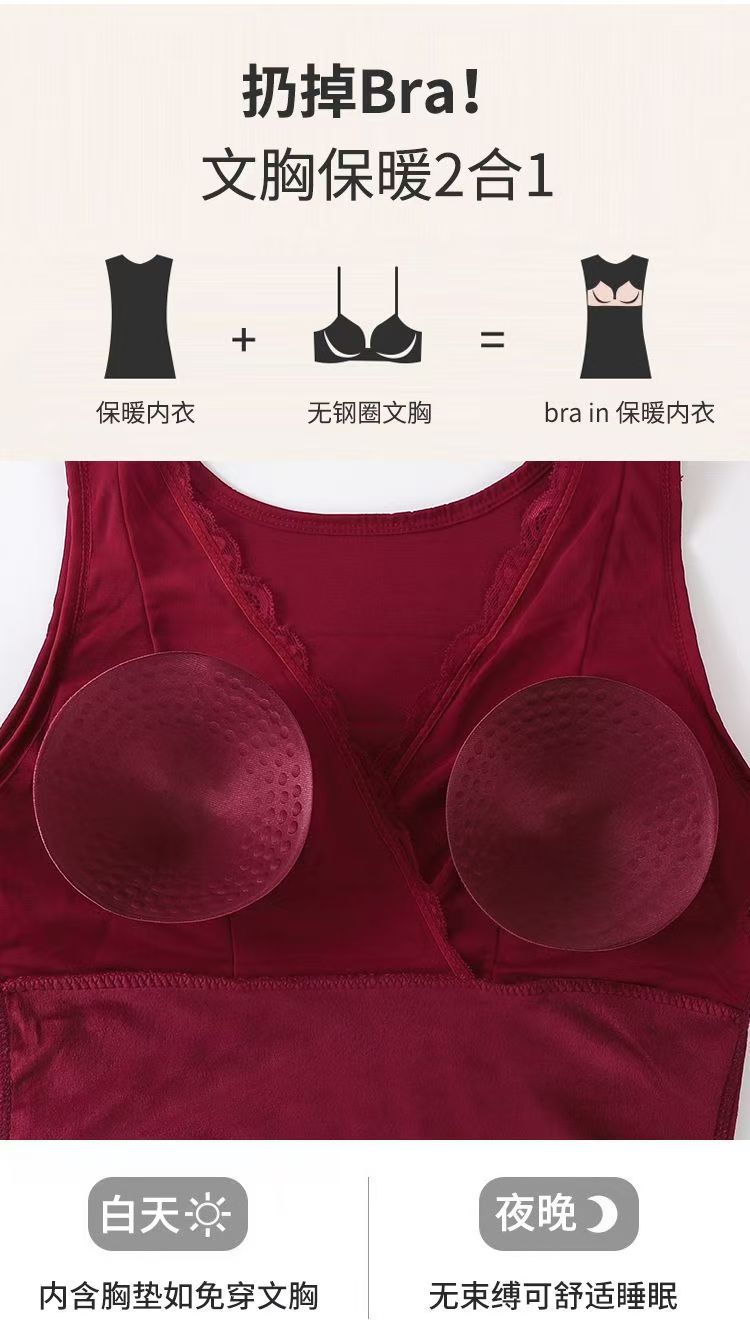 新款本命年保暖背心女2025新款大红色加厚绒发热带胸垫保暖内衣