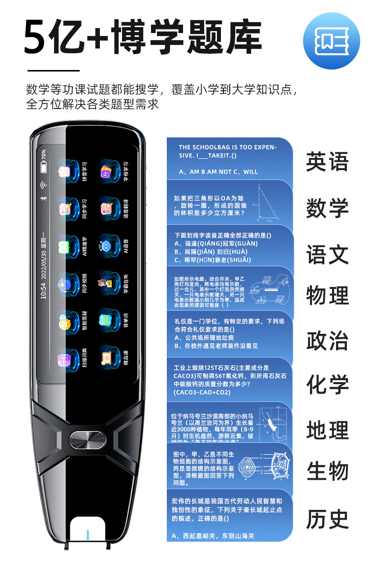 多機能三合一学習ペン、リスニングツール、全科目対応、小学校・中学校・高校向け、スキャンして問題を解く、携帯型