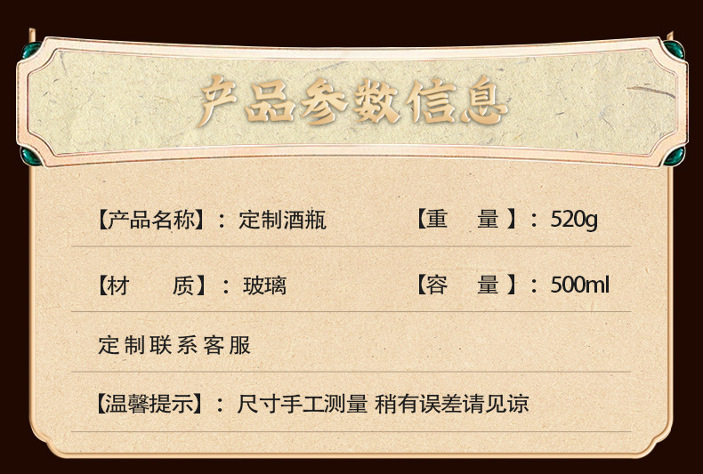 0.5kg パックゴールデンリスト白ワインボトル家庭用入学宴会ワインボトル素晴らしい未来空のワインボトルガラス白ワインボトル