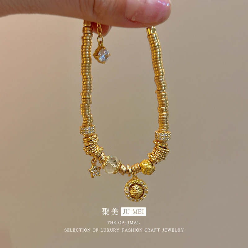 沙金斗转星移古法星轮盘缠手链女镶嵌金刚杵小众轻奢高级感手饰品