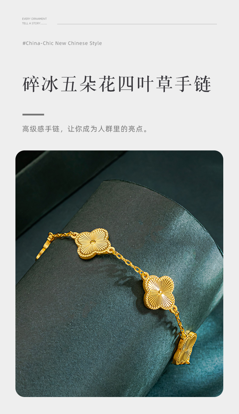 ベトナム沙金砕氷五輪花四葉草ブレスレットはファッション通勤に適しています。