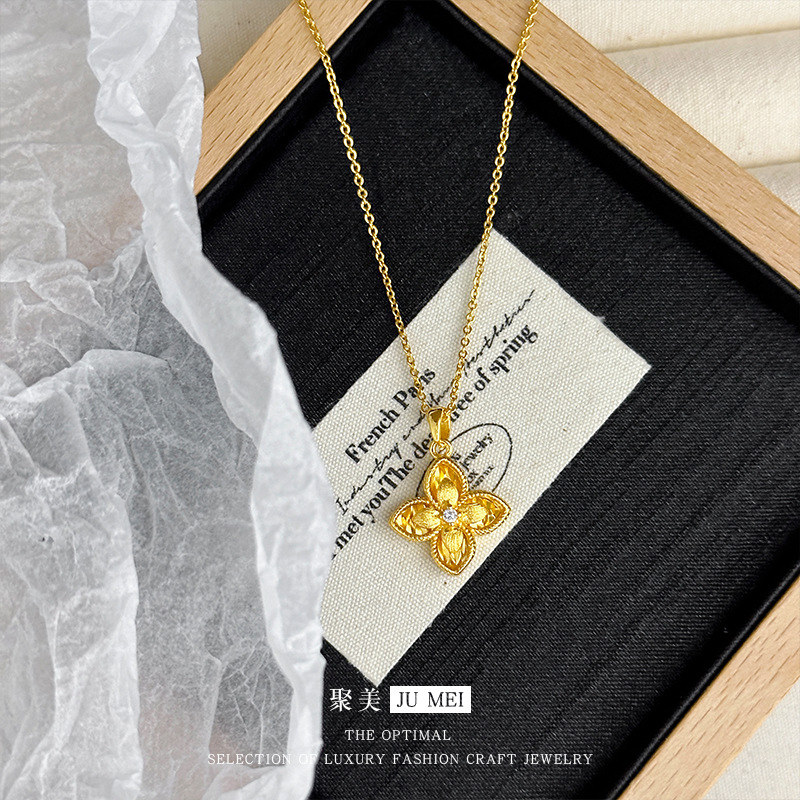 古法金布契風伸糸四葉草ネックレスベトナム沙金金メッキ花糸ペンダント高級感鎖骨鎖