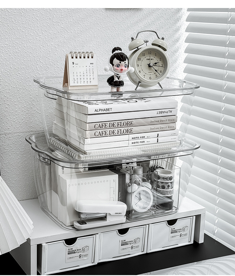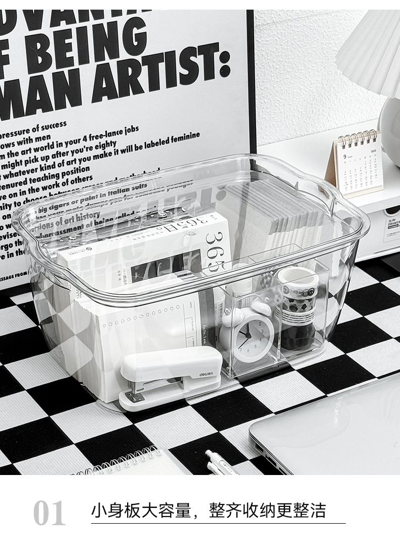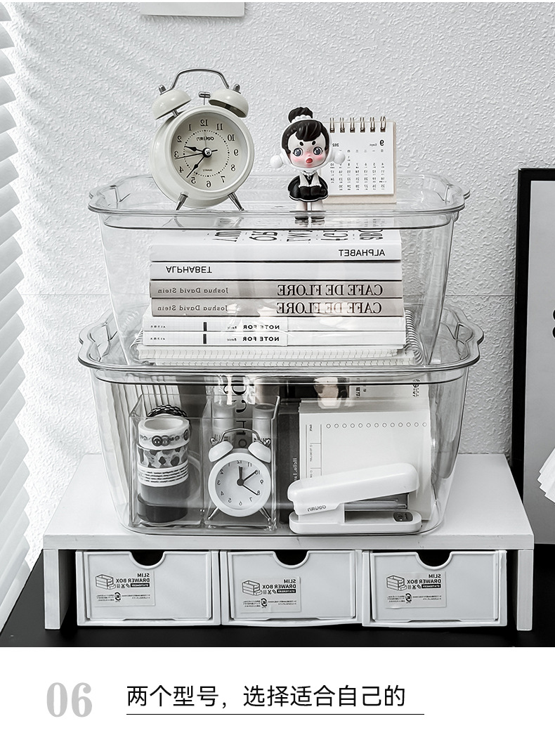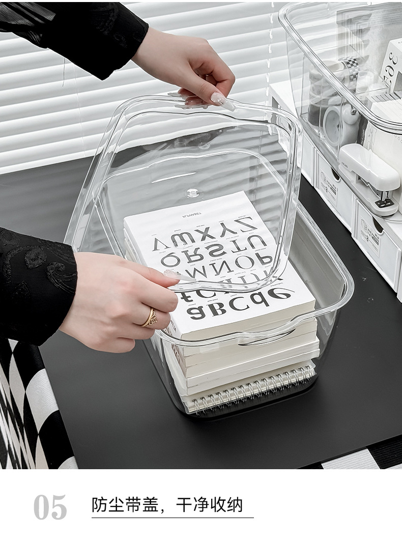 デスクトップ透明収納ボックス学生デスククリエイティブ文房具手帳カード整理ボックス蓋付きスナック透明収納