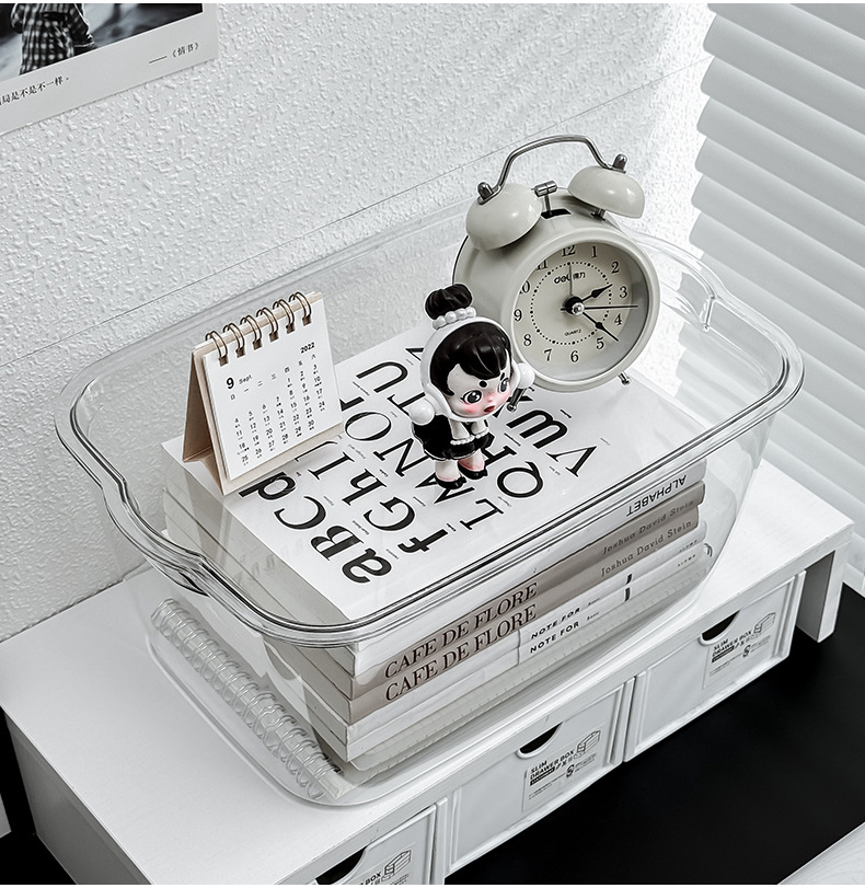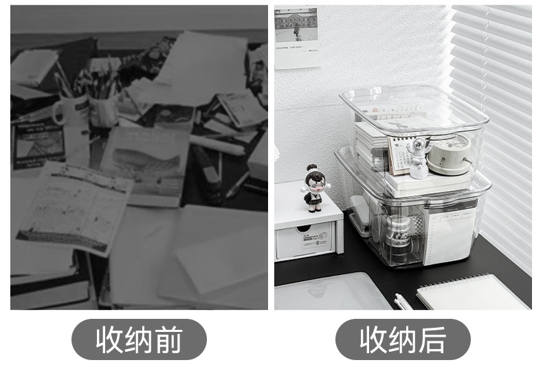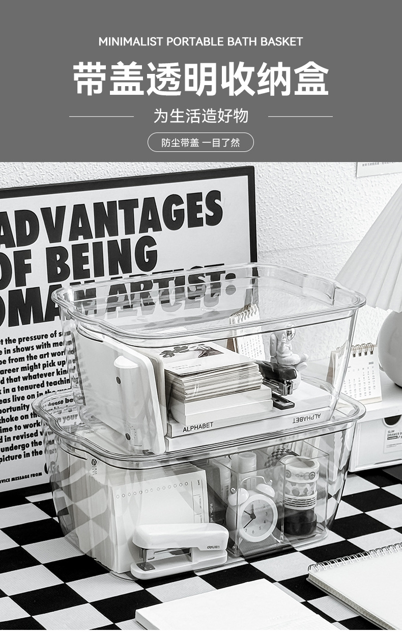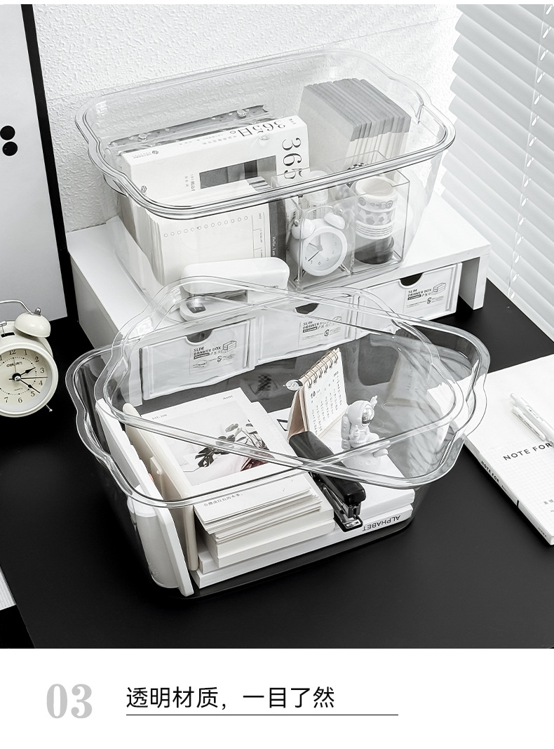 デスクトップ透明収納ボックス学生デスククリエイティブ文房具手帳カード整理ボックス蓋付きスナック透明収納