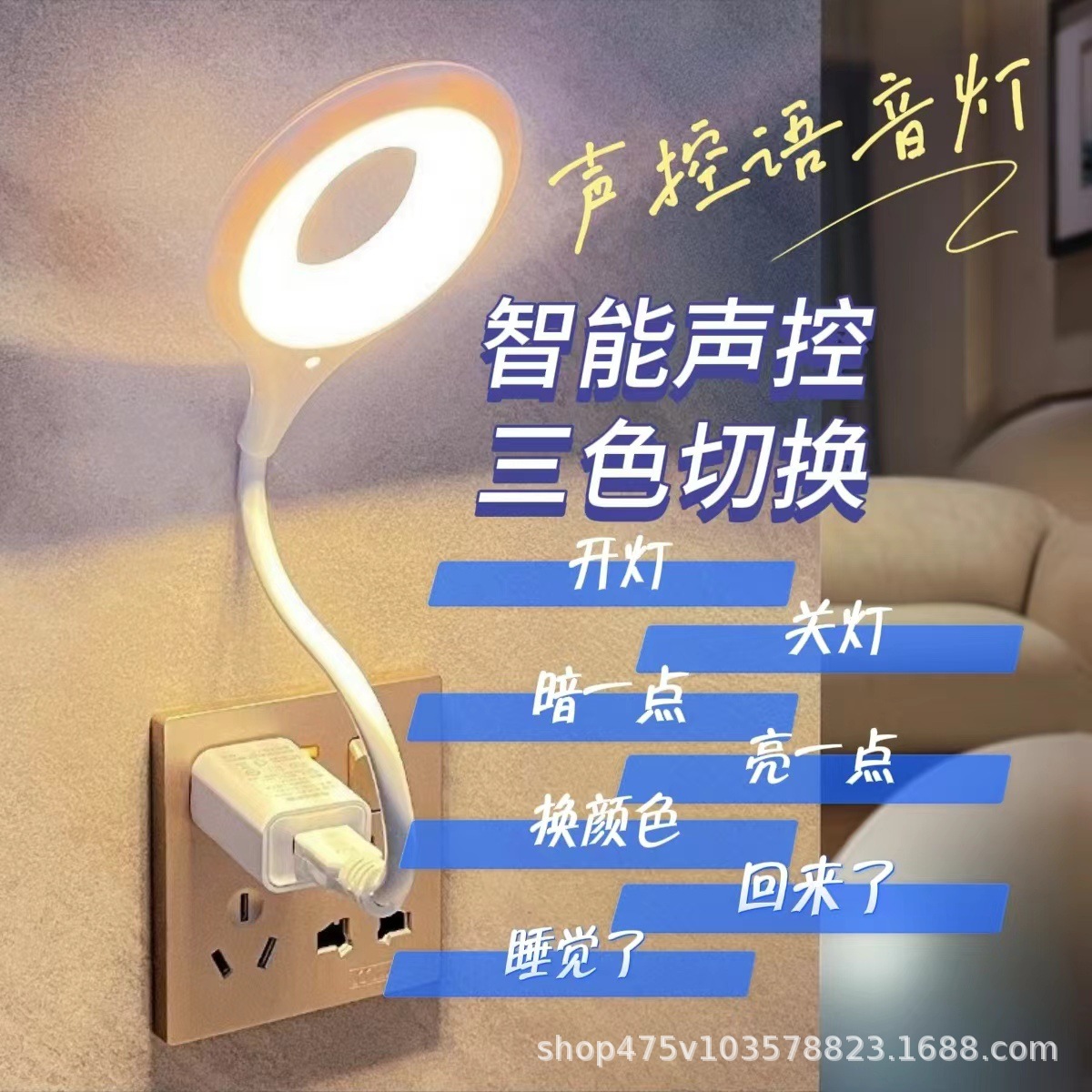 スマート音声小夜灯音声制御USBソケット創意寝室ベッドサイド創意灯携帯LED音声制御