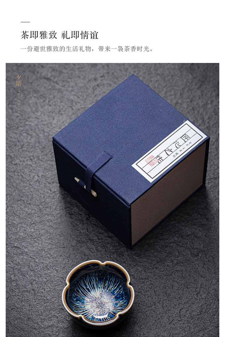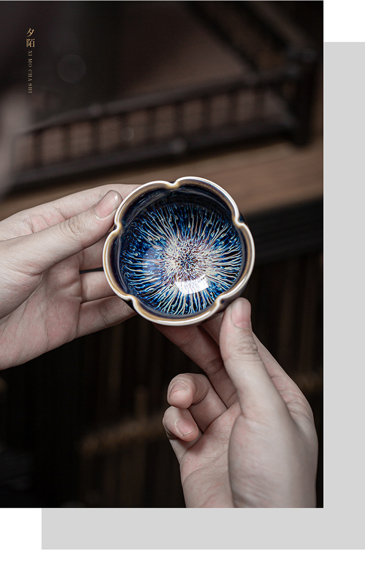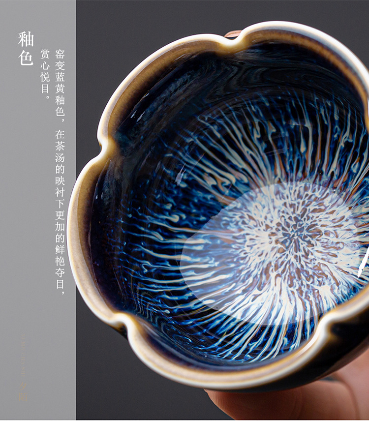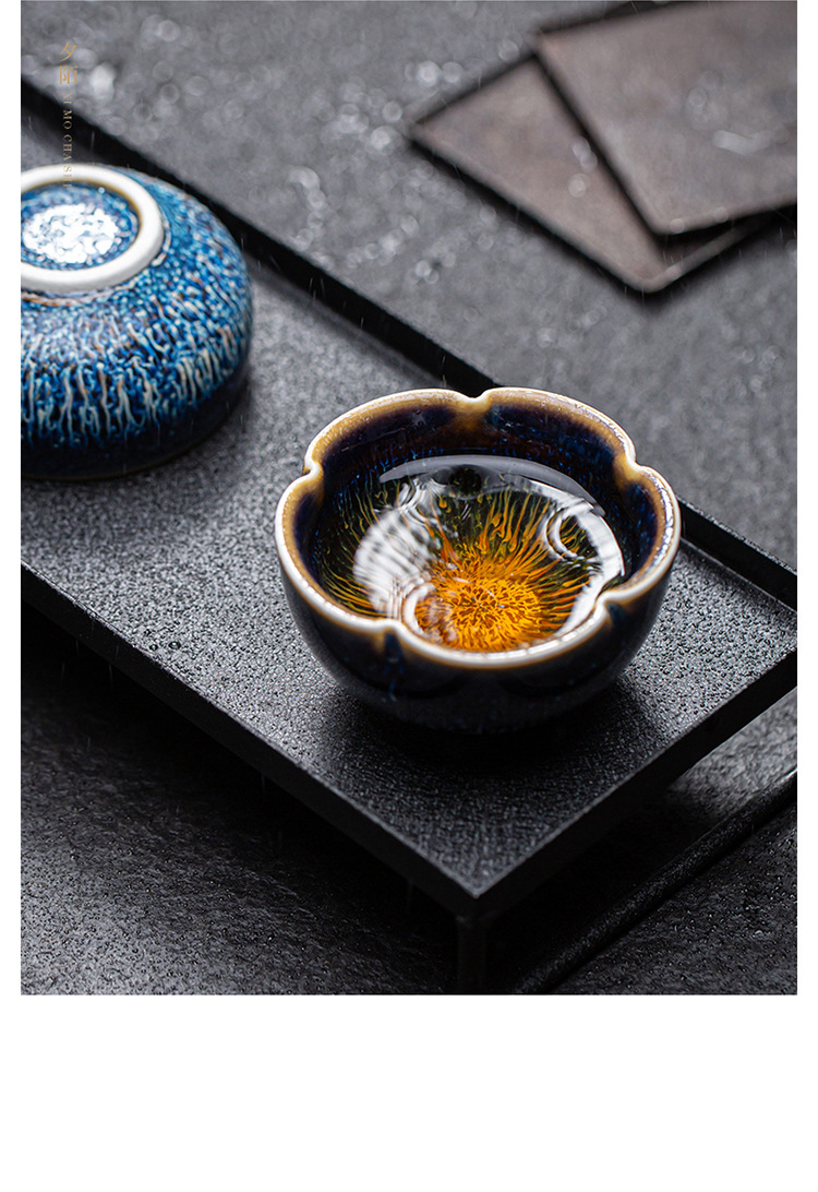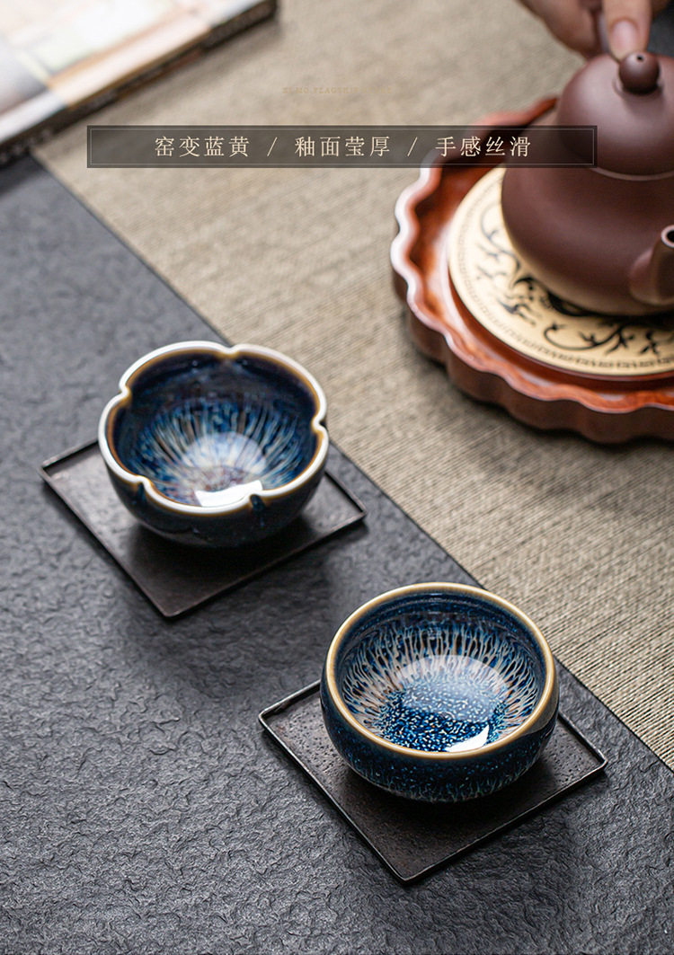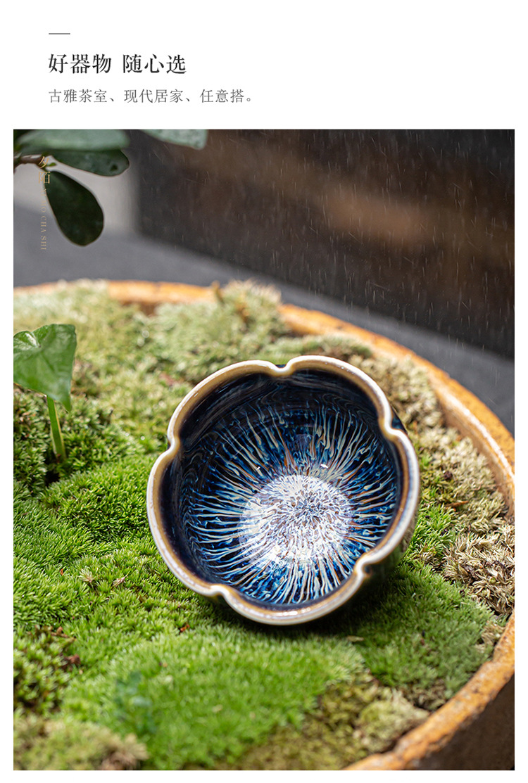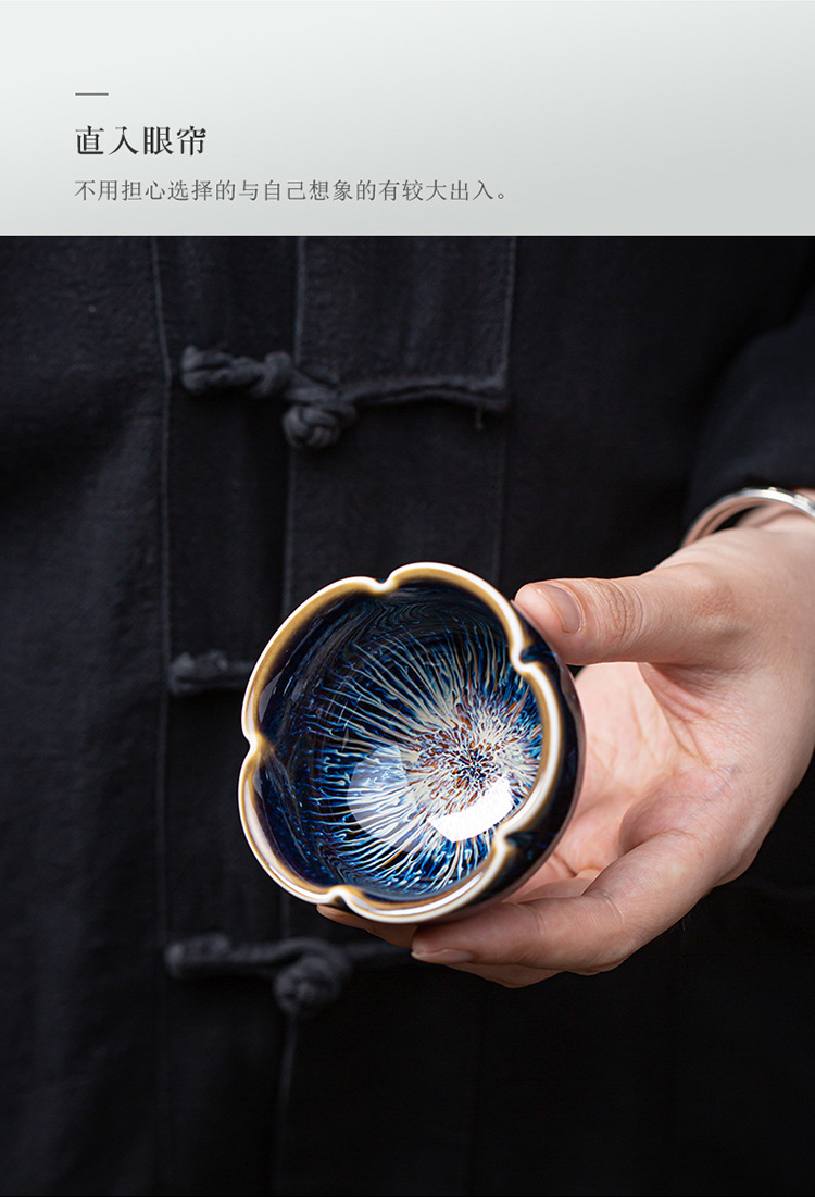景德镇天目釉建盏茶杯窑变陶瓷品茗杯单杯功夫茶具花瓣主人杯家用