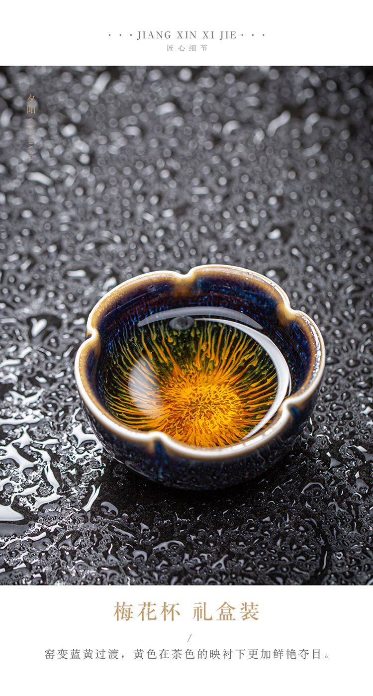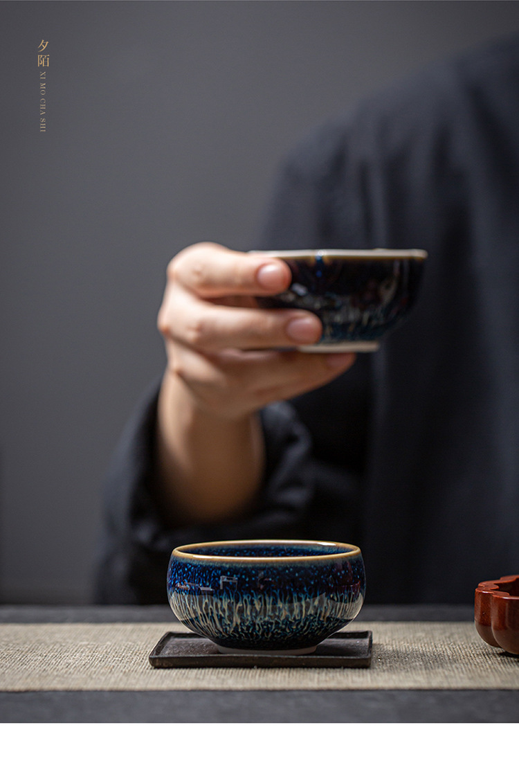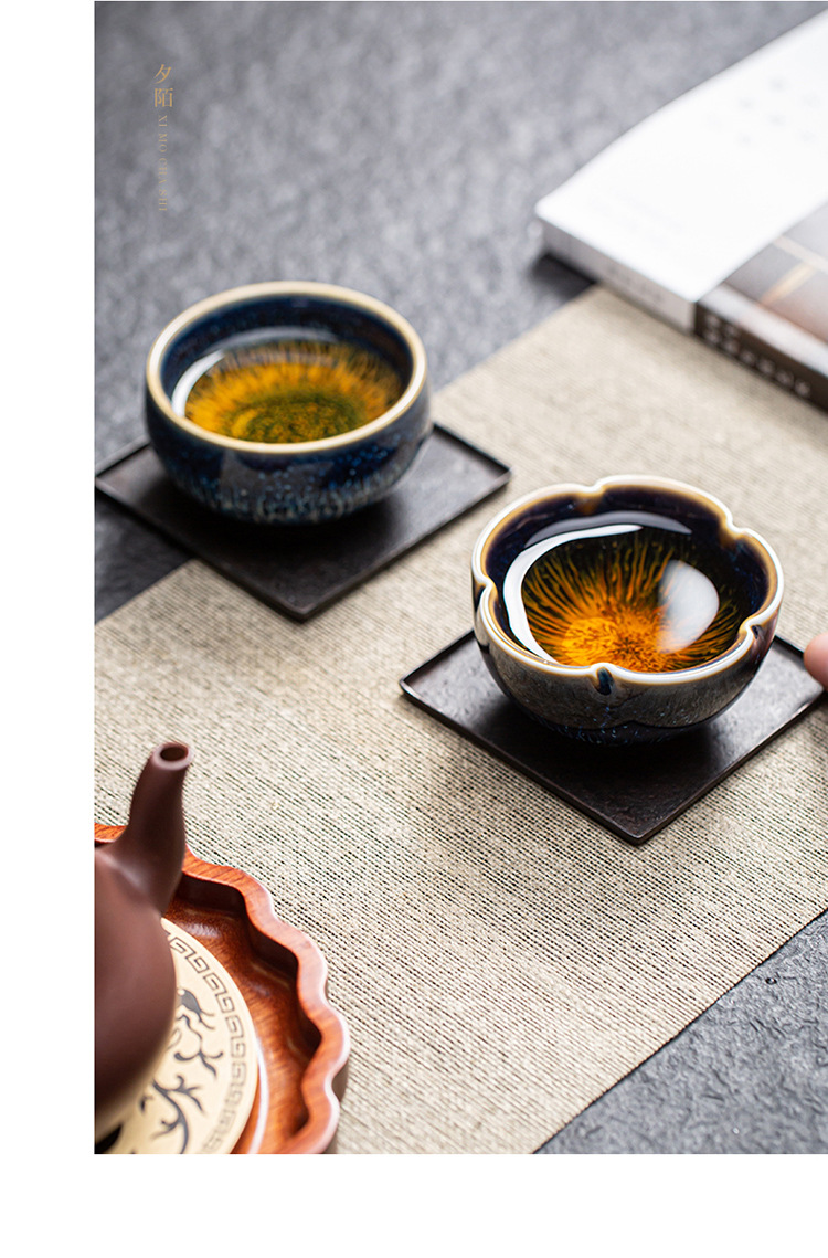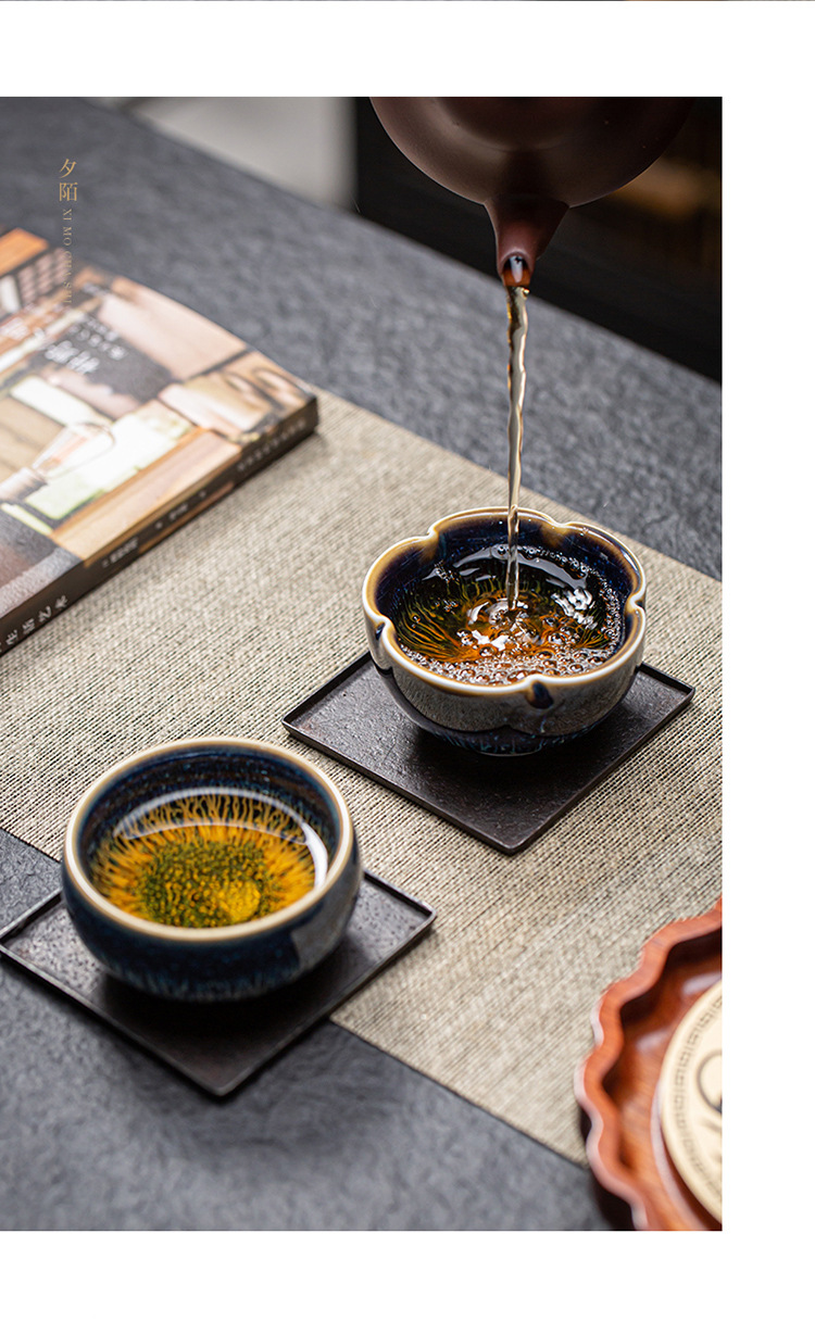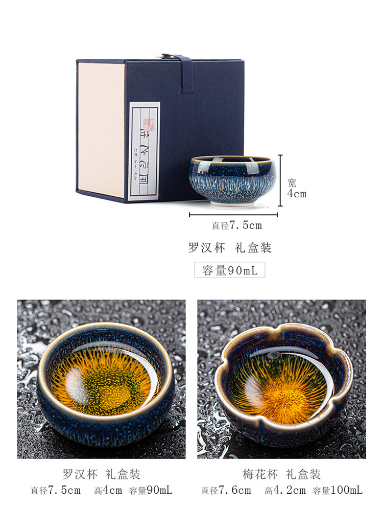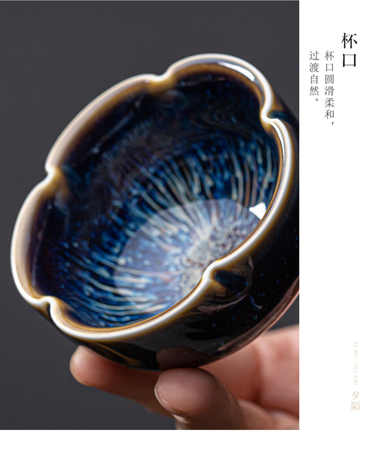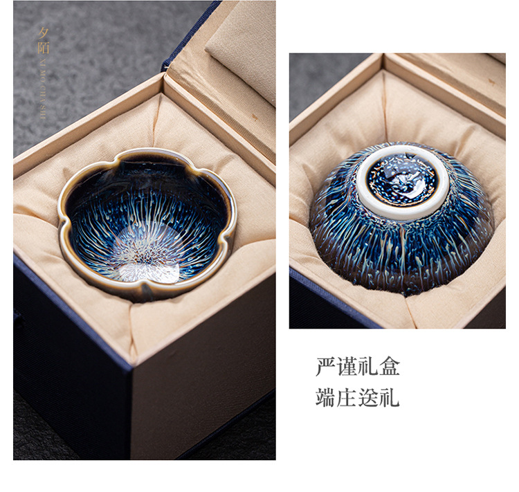 景德镇天目釉建盏茶杯窑变陶瓷品茗杯单杯功夫茶具花瓣主人杯家用
