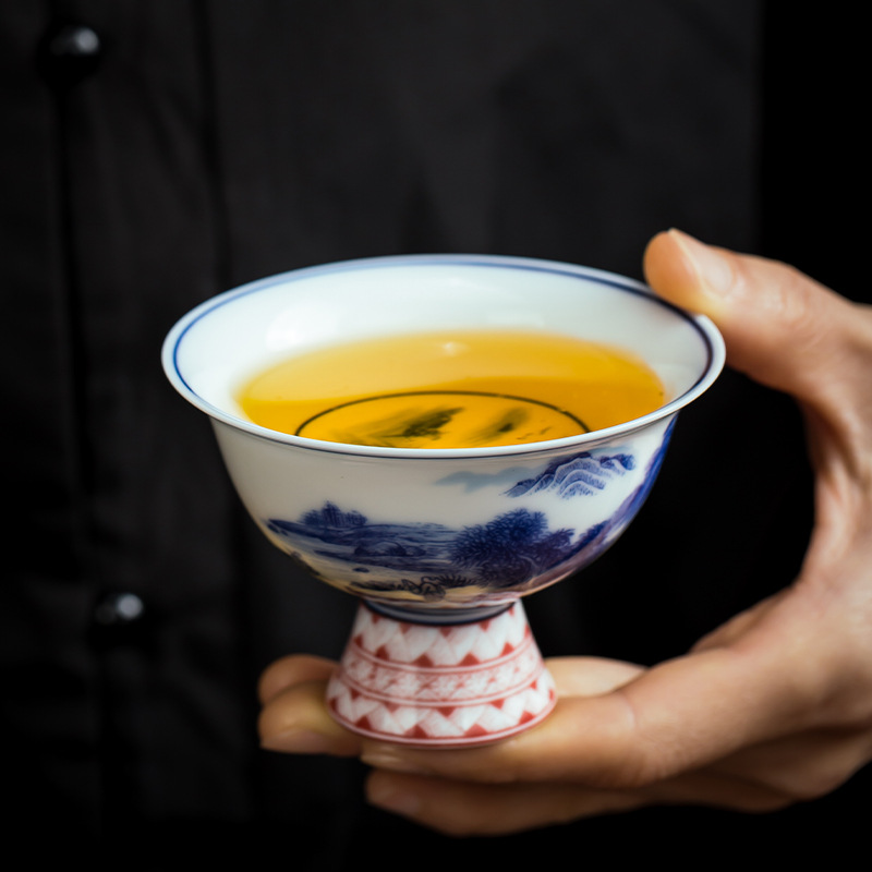 徳化白磁器主人杯レトロ青花山水単杯陶磁器かめ杯主人杯軽豪華高級高足杯