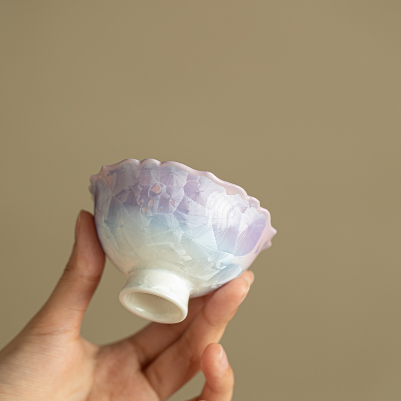 景德镇紫黛渐变结晶釉茶杯花口主人杯精致女生品茗杯陶瓷茶具茶盏