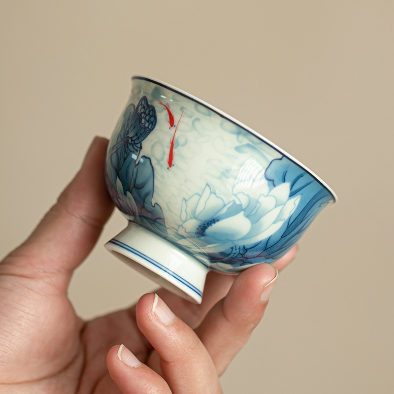 景徳鎮老陶泥手作り青花磁器茶杯品茗杯主人杯陶磁器工夫茶具茶杯単杯