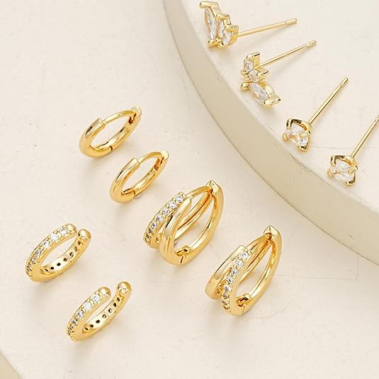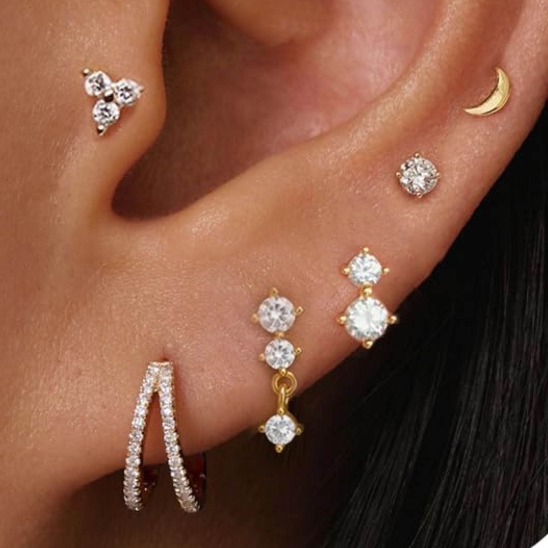 黄銅真金メッキ欧米の国境を越えて人気があるジルコン太陽月ジルコン軟骨イヤリングピアス3点