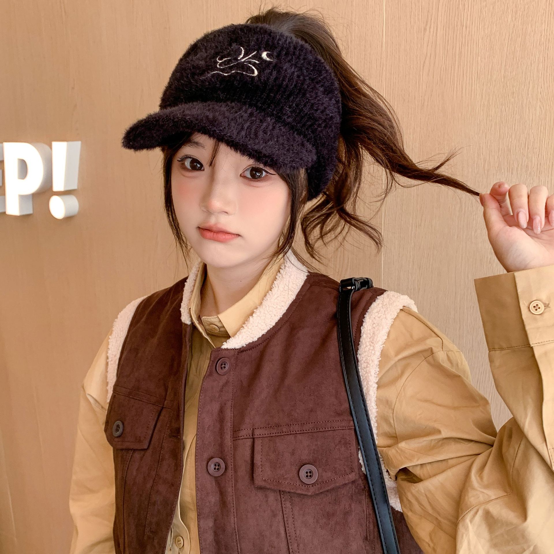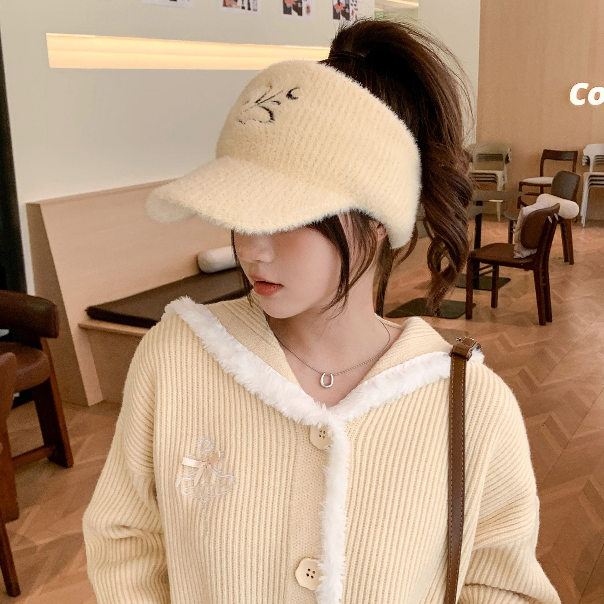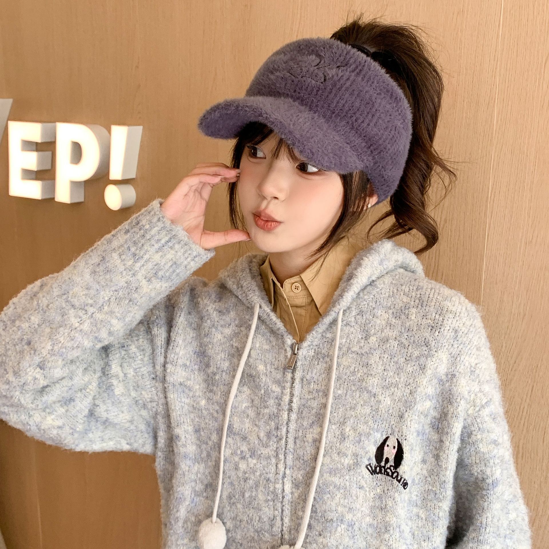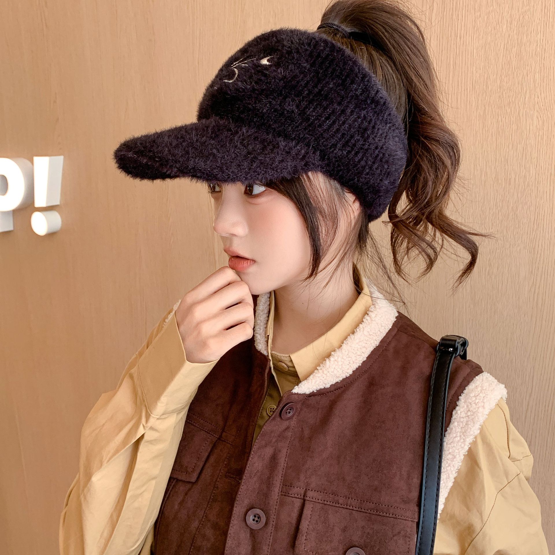 帽子の女性秋冬ファッション保温ベルベットニット野球女性鴨舌毛糸空頂帽子冬韓系女性