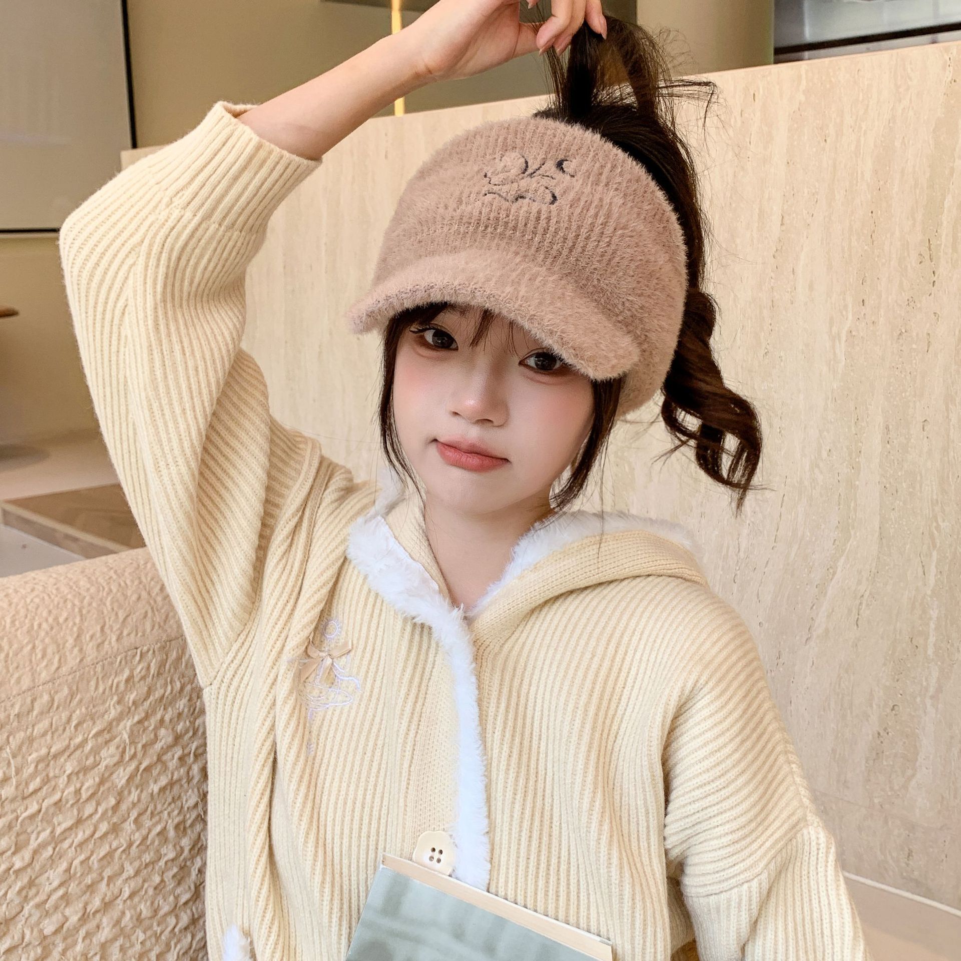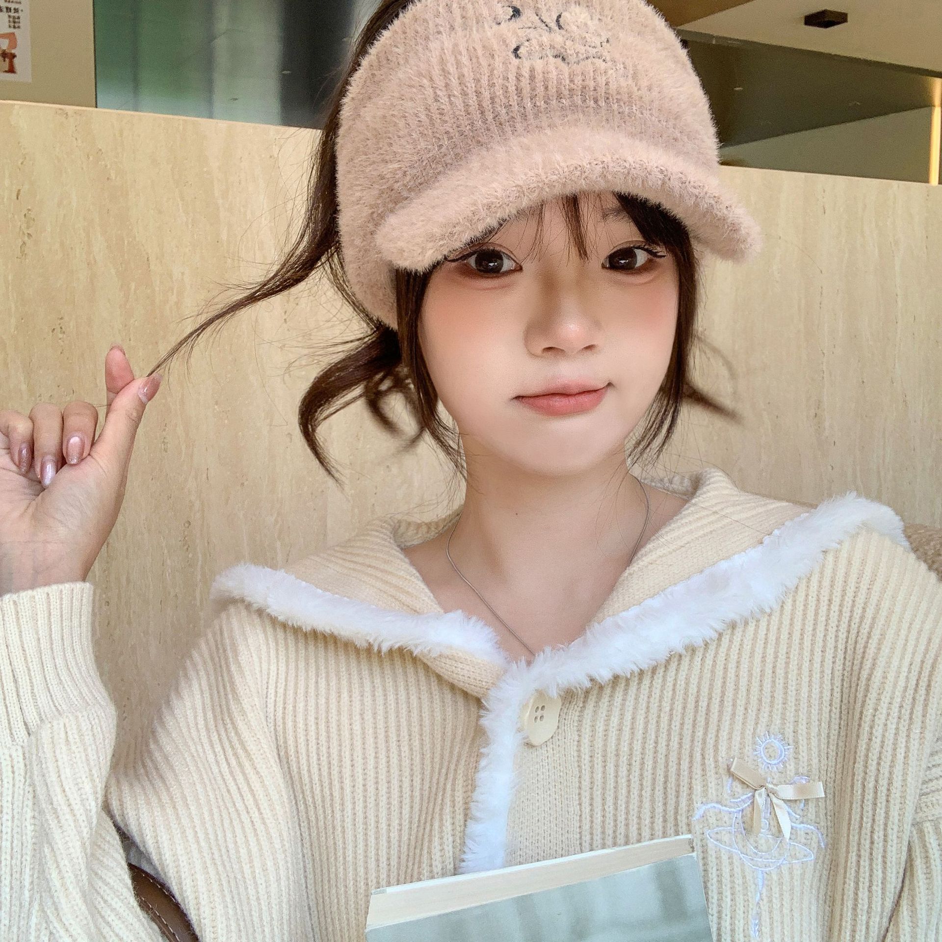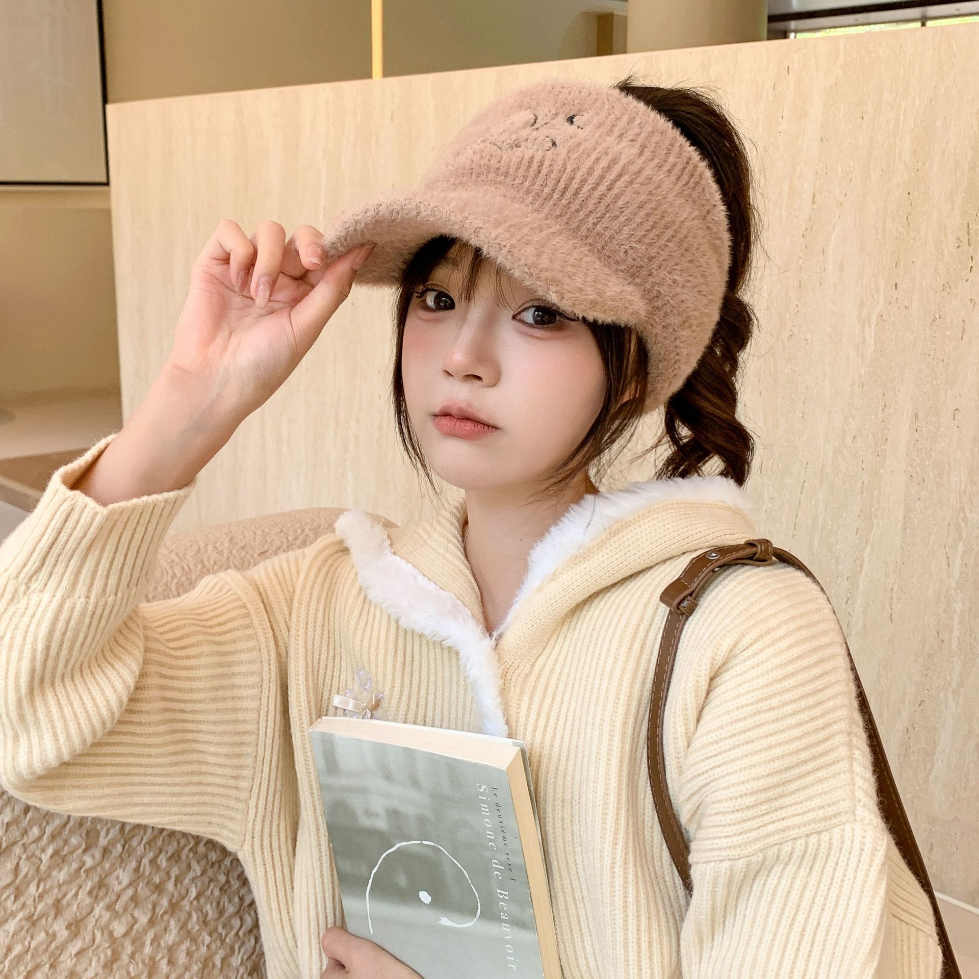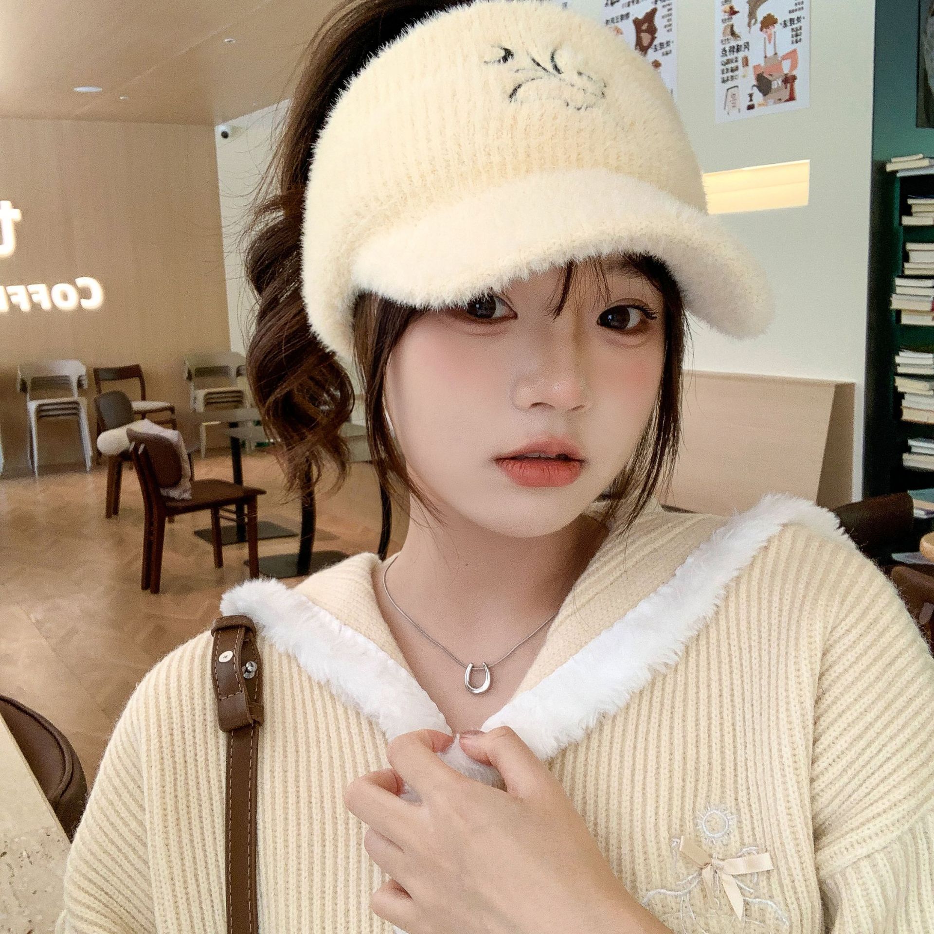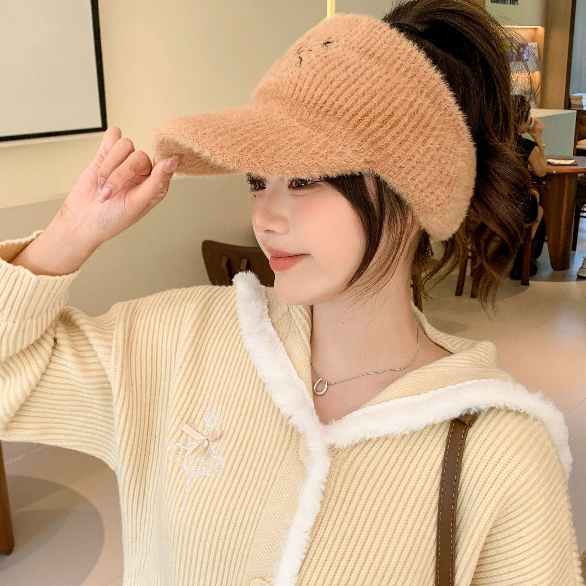 帽子の女性秋冬ファッション保温ベルベットニット野球女性鴨舌毛糸空頂帽子冬韓系女性