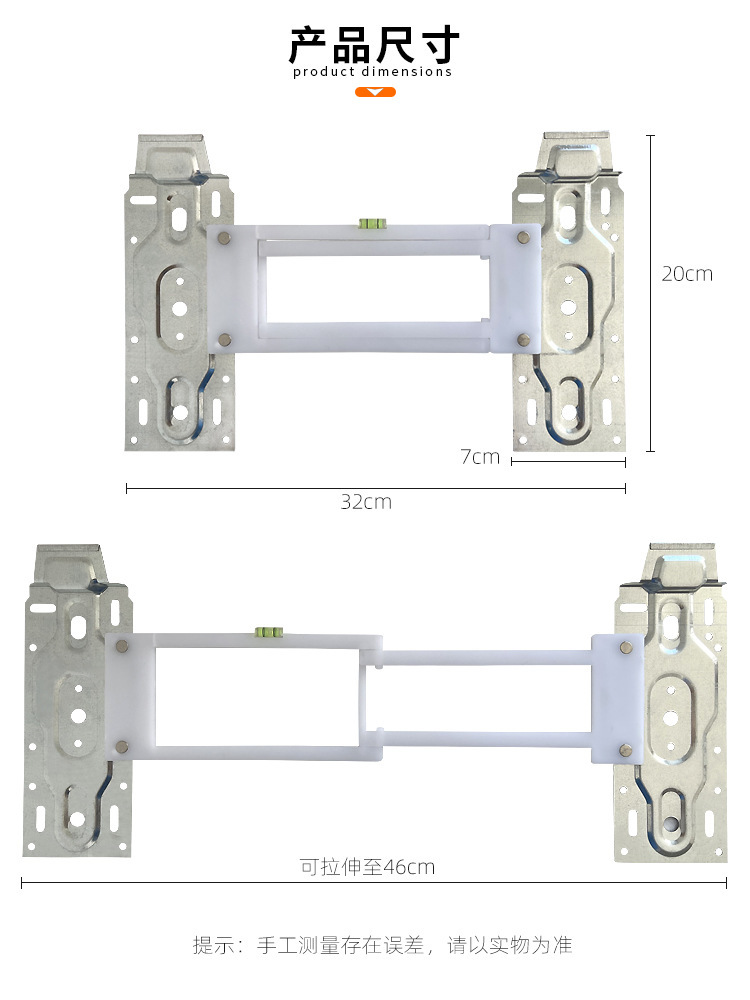 汎用エアコン内機吊り板1-3頭水平計付き伸縮カールを調節して壁ブラケットを厚くすることができる