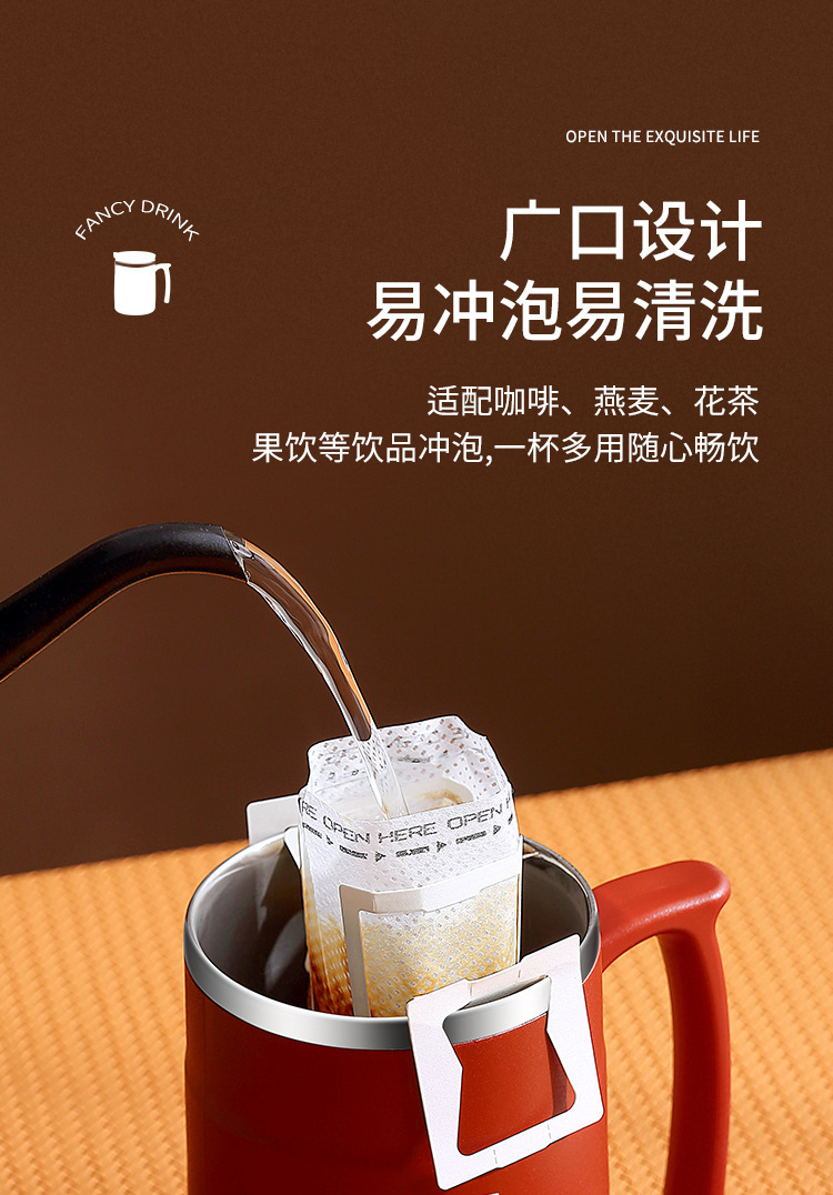 304ステンレスマグカップ蓋付きオフィス高颜値コーヒーカップオープンプレゼント