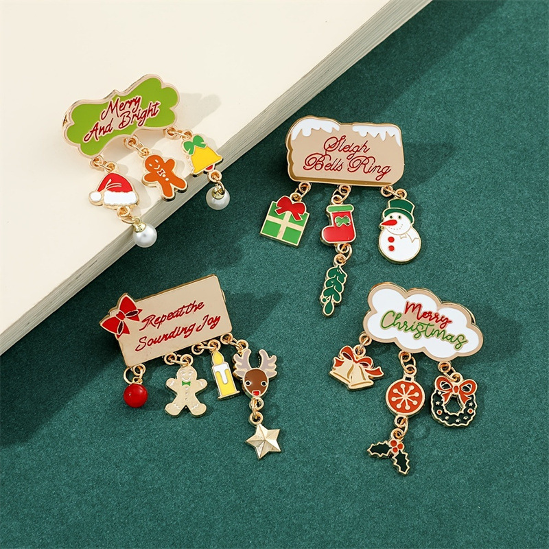 欧美跨境圣诞节新款胸针 圣诞老人圣诞树姜饼人麋鹿胸针配饰套装