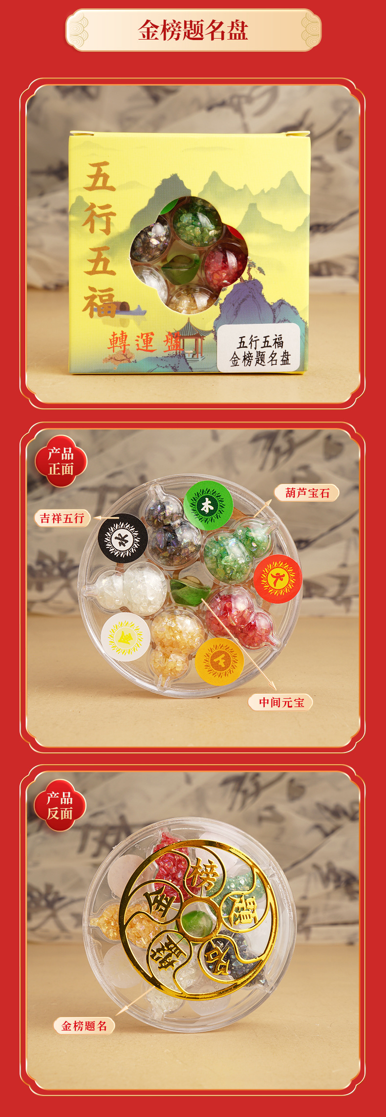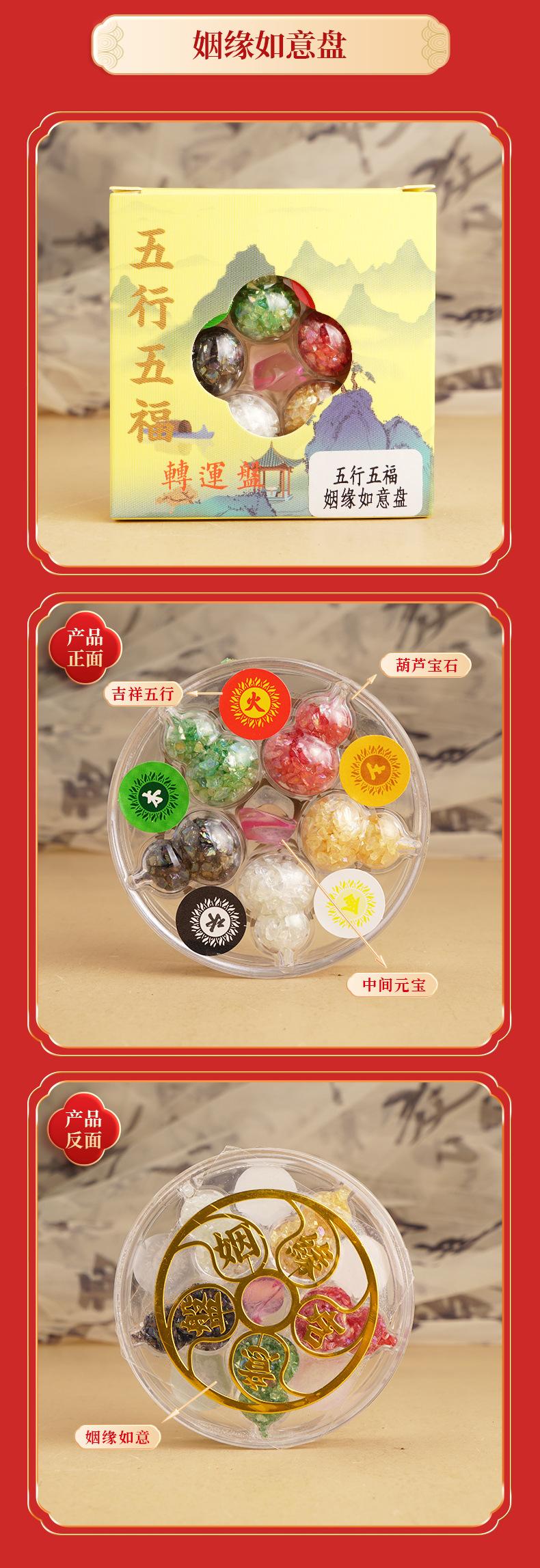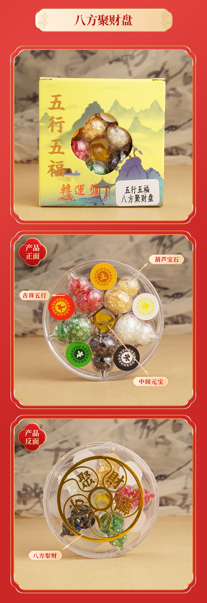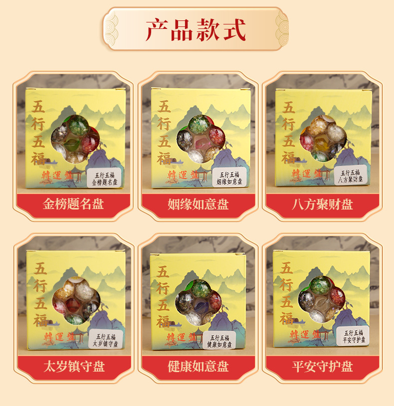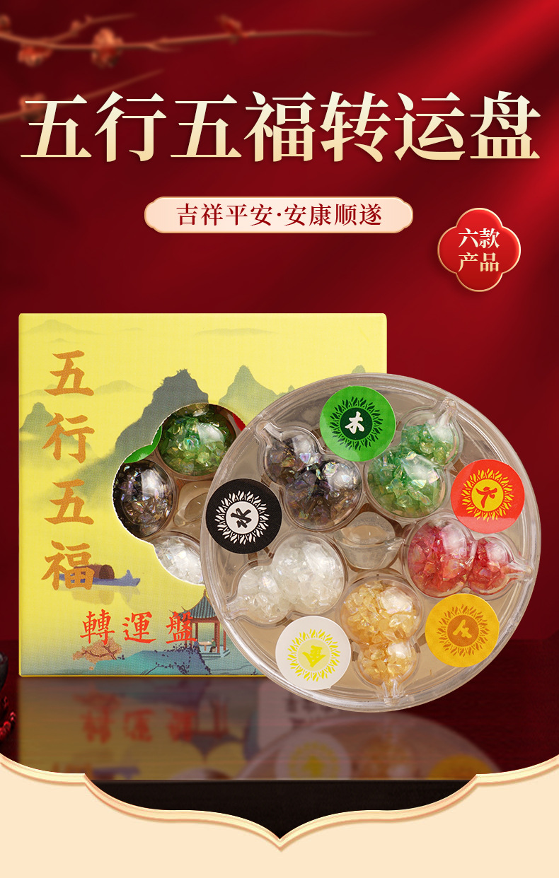 批发2026年五行五福转运盘 金木水火土水晶摆件