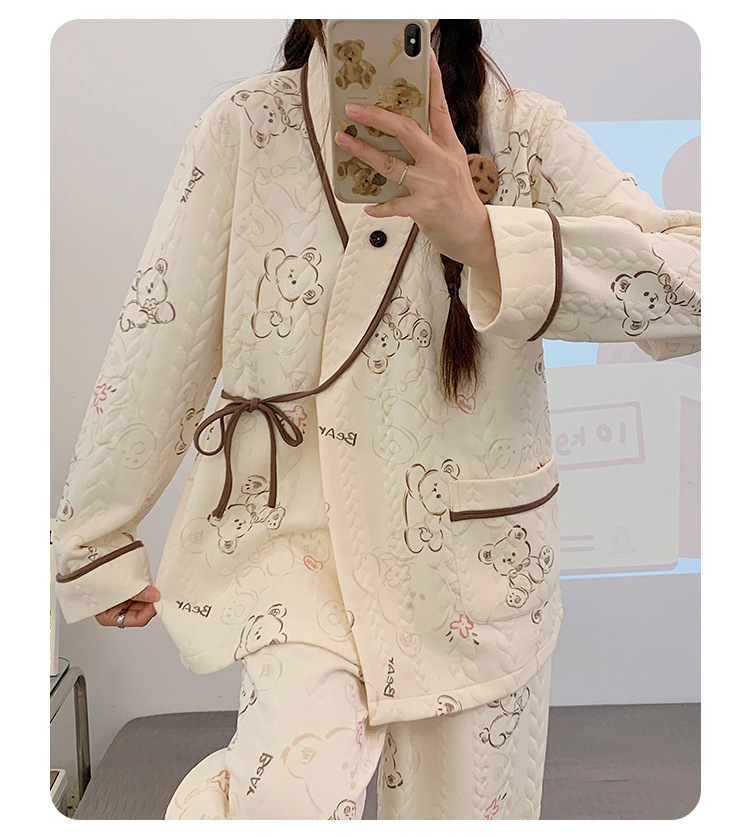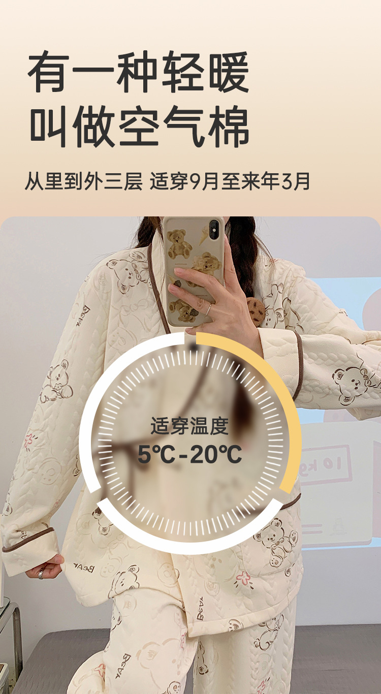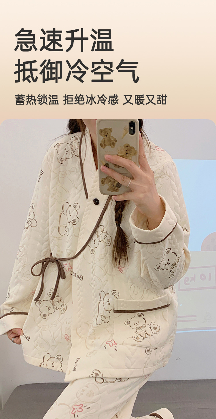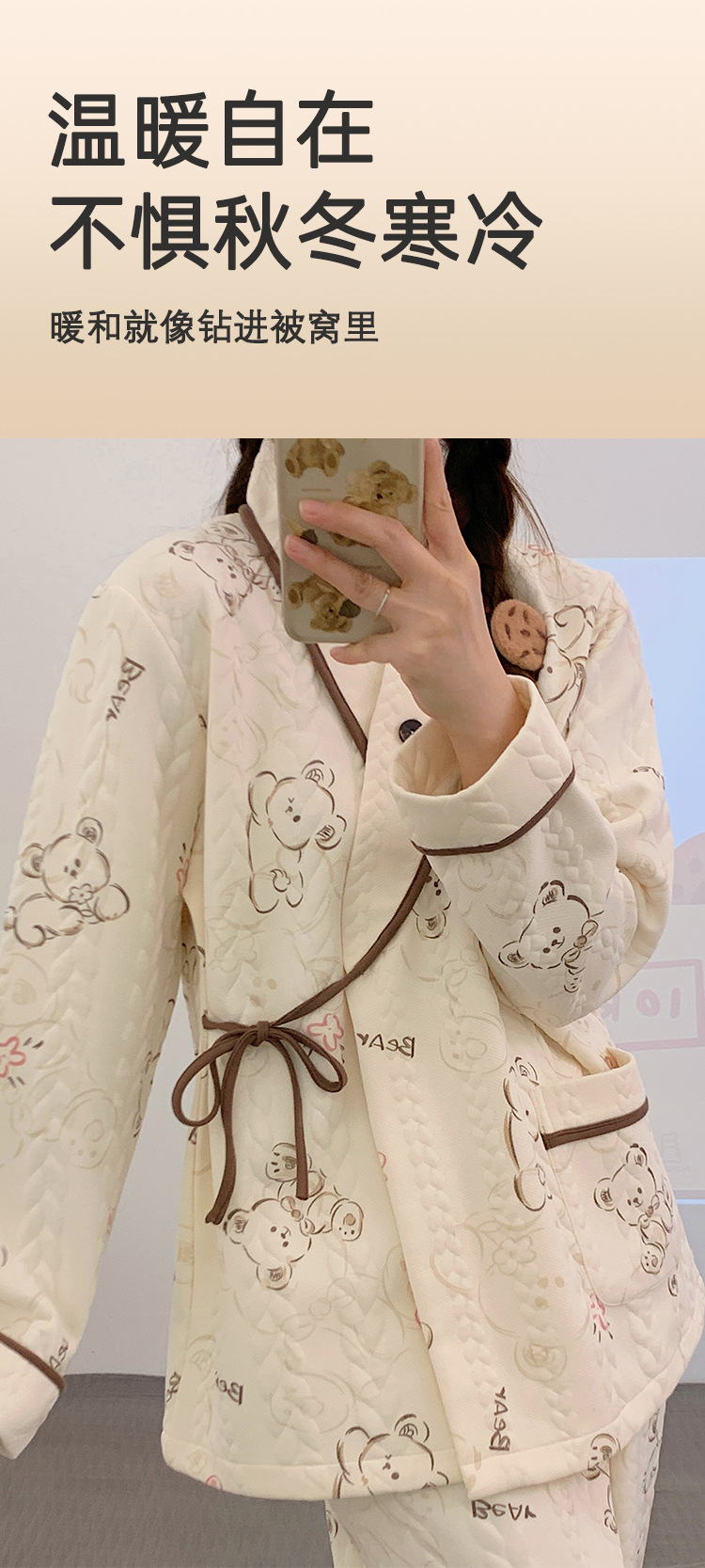 3月子服春秋款空气棉夹棉哺乳睡衣三件套产妇孕妇喂奶待产房家居