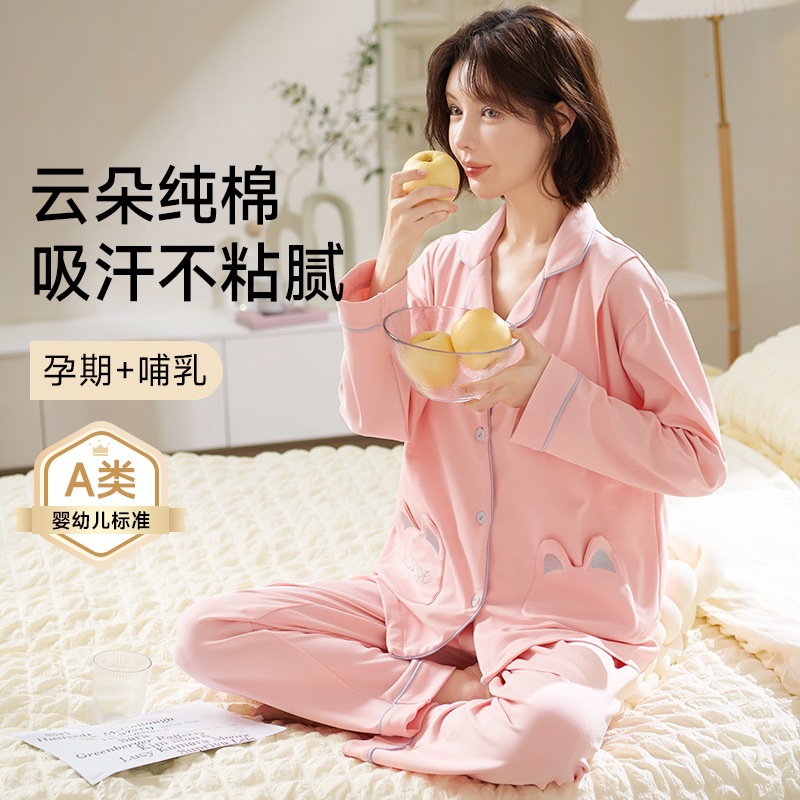 月子服春秋厚手空気綿産後授乳服外出産婦月子吸汗妊婦パジャマ授乳
