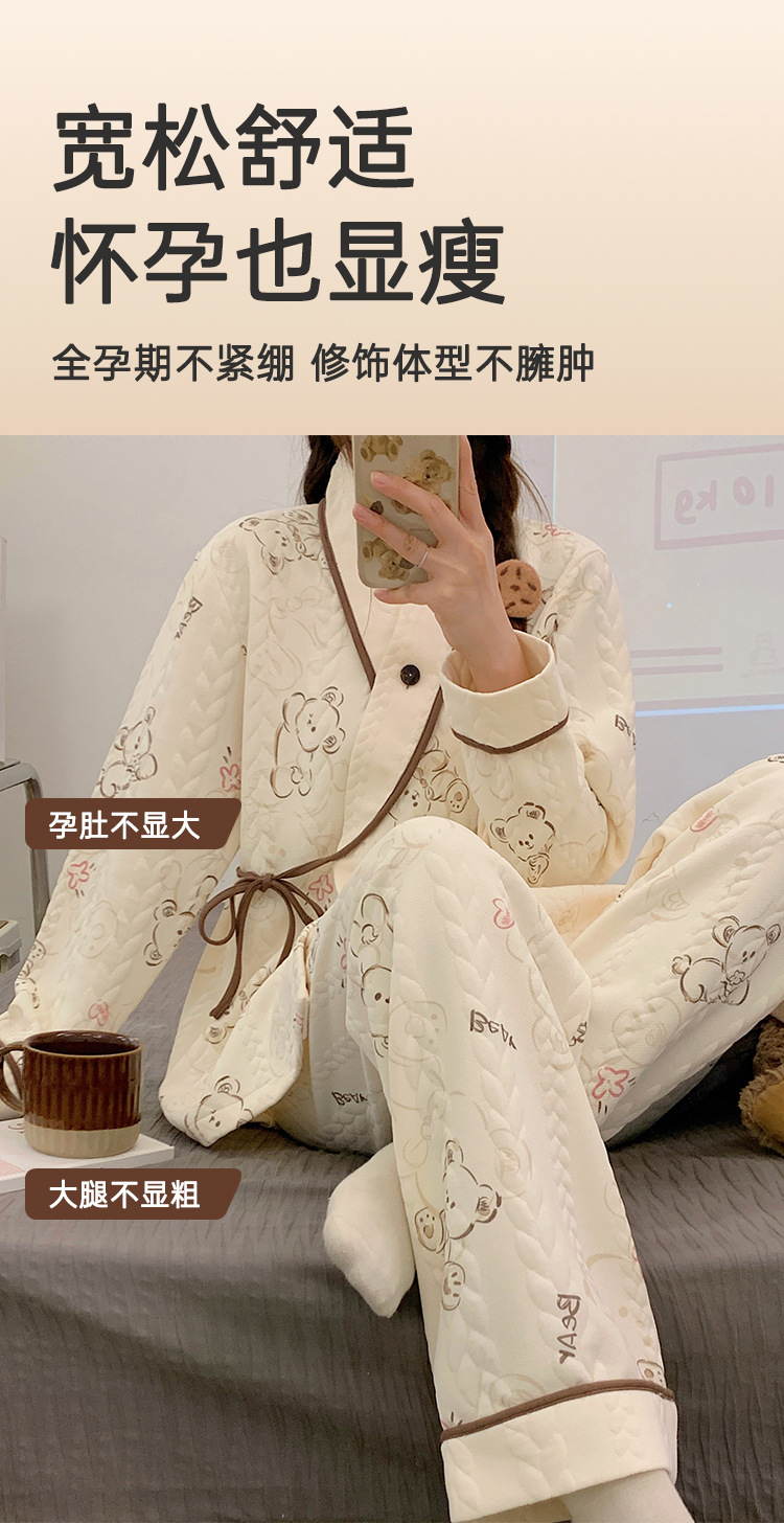 妊婦パジャマ秋冬厚手産後授乳期空気綿月子服春秋ゆったり授乳産婦ホームウェア