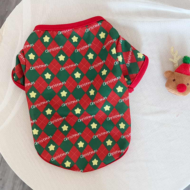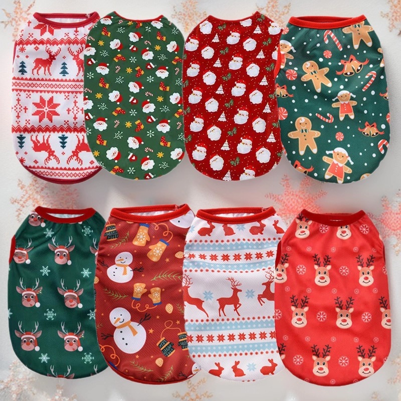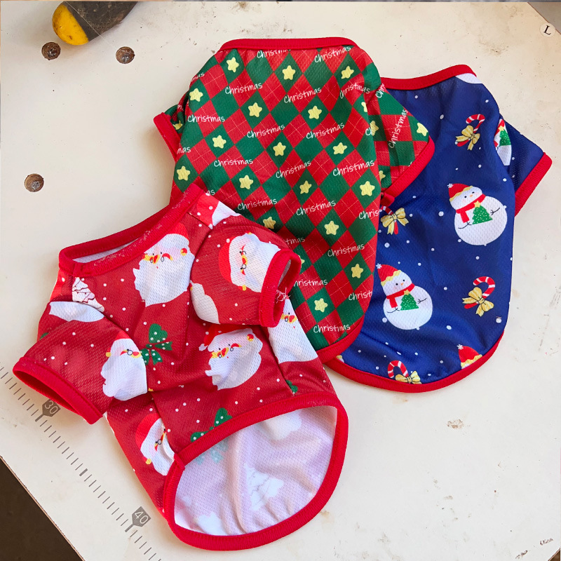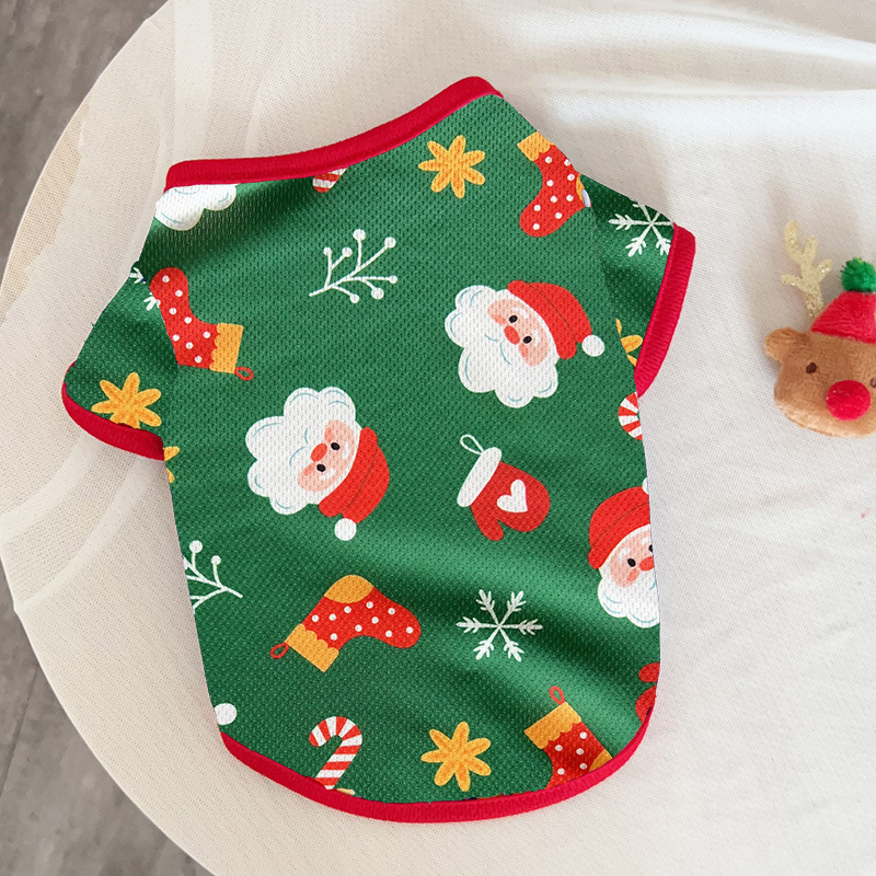 クロスボーダー爆発クリスマス犬薄手服小型幼犬漫画プリントベスト春夏猫服