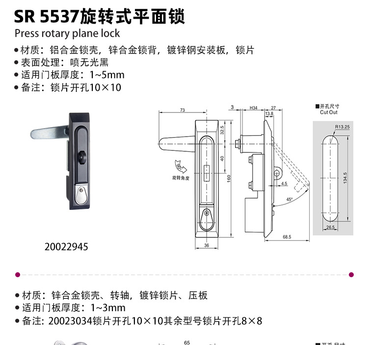ESSENTRA/益昇華配電盤ドアロック配電箱ロックSR 5537押しレバー式平面ロック