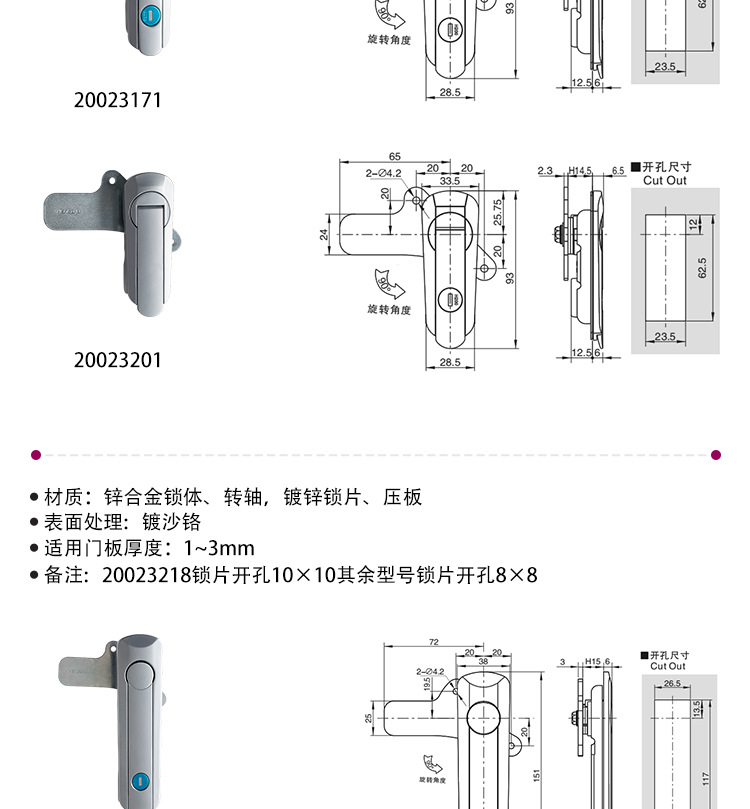 AB303ブリキキャビネット配電箱ロックキャビネット設備ドアロックAB302金物工業キャビネットドアロックAB301-1