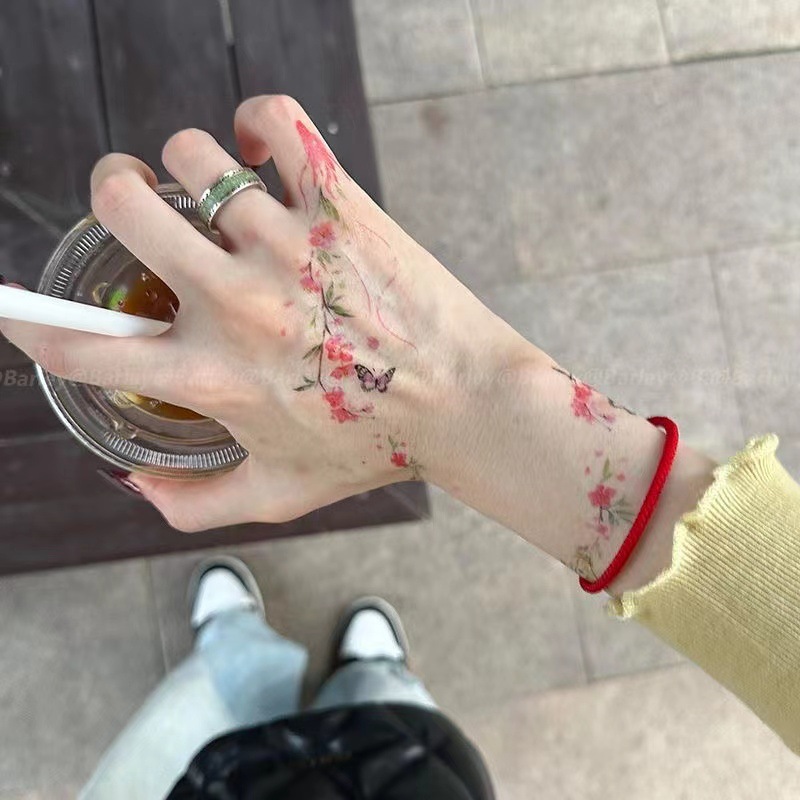 新品花蝶カラー入れ墨国风インスタ高颜値清新手巻きギャル潮可水洗い长持ち入れ墨