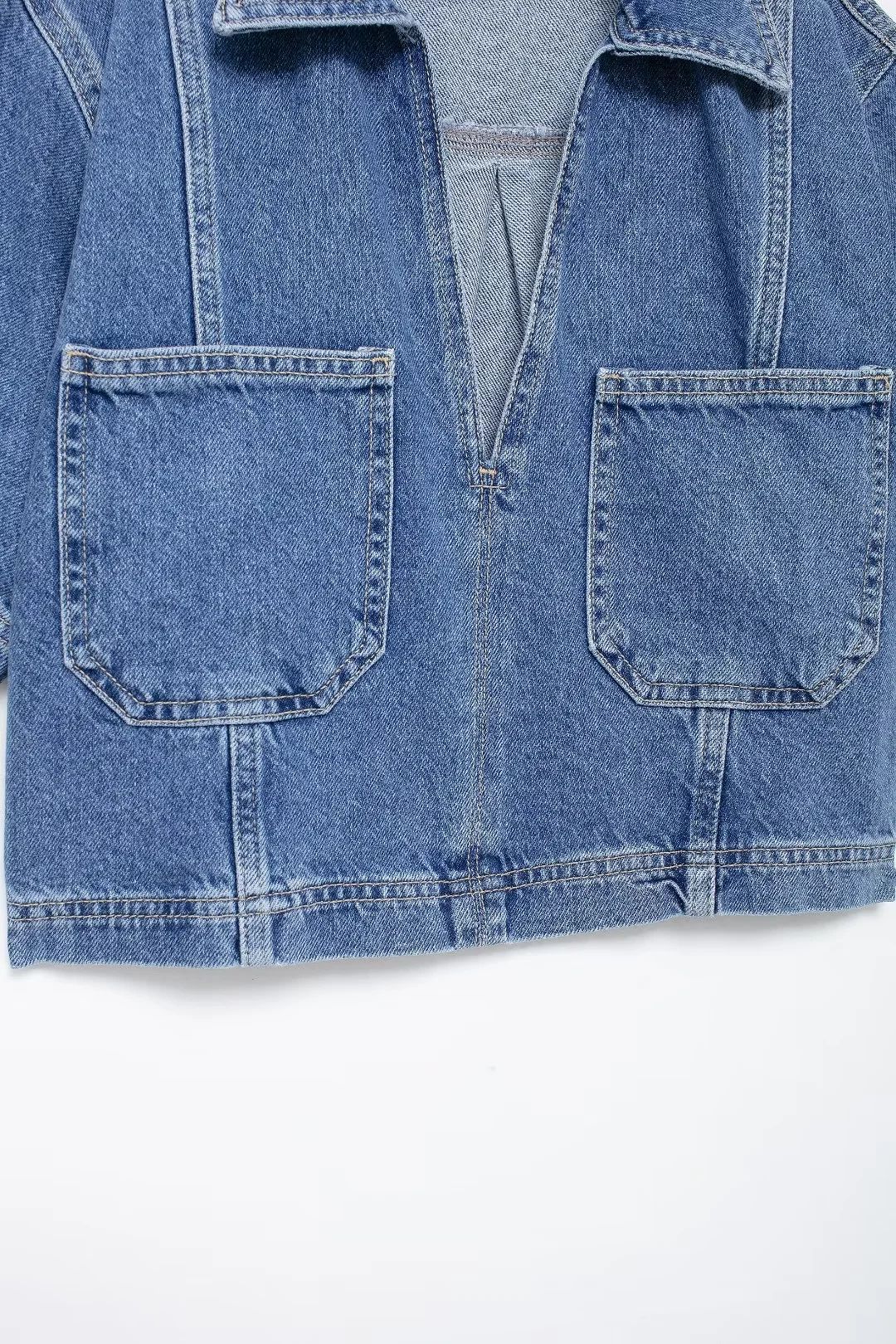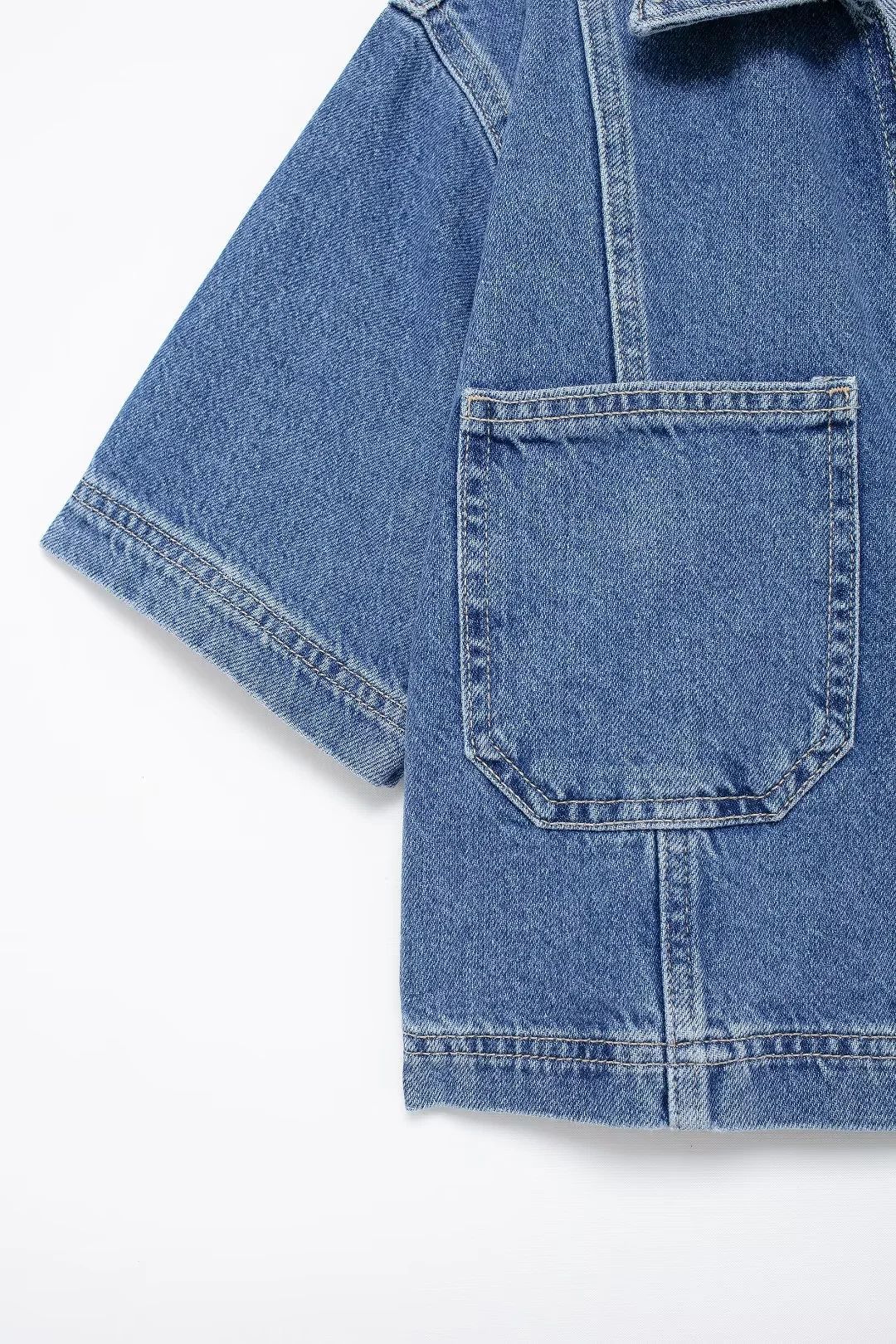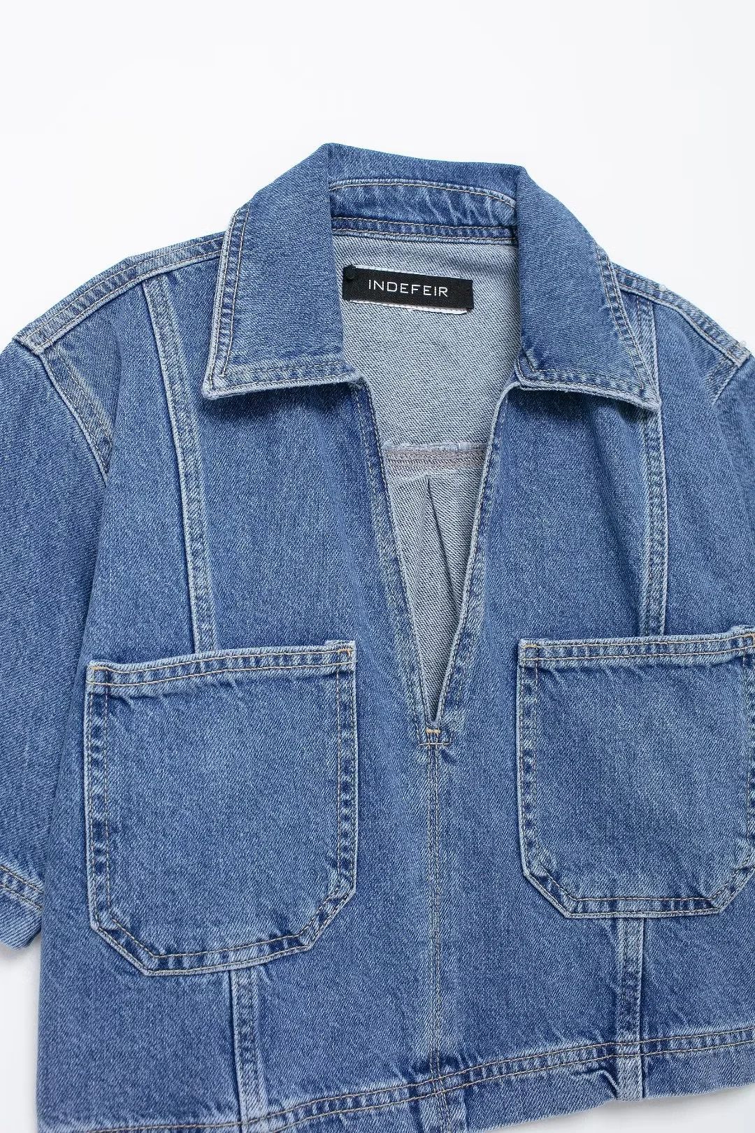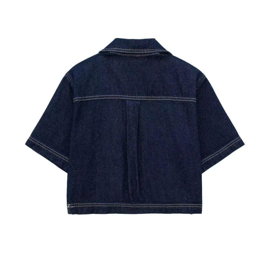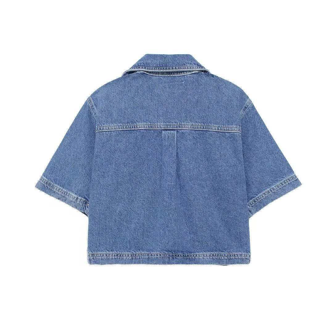 外贸批发欧美风 短款牛仔衬衫6164070双襟牛仔裙裤6164068套装