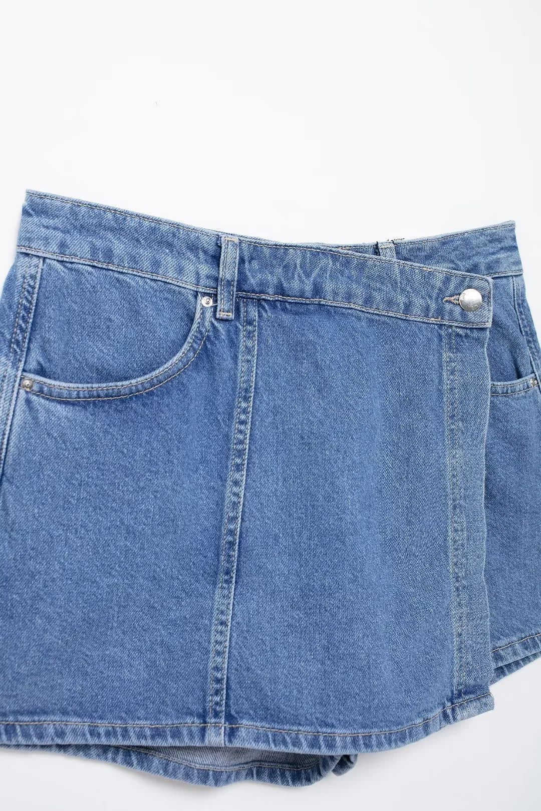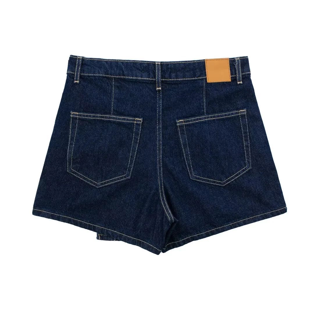 外国貿易リスト! 婦人服カジュアルポケット飾りデニムシャツ6164155非対称キュロット616413セット