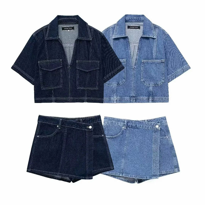 国境を越えた対外貿易2025カジュアルポケット飾りカウボーイシャツ6164155非対称スカート616413セット