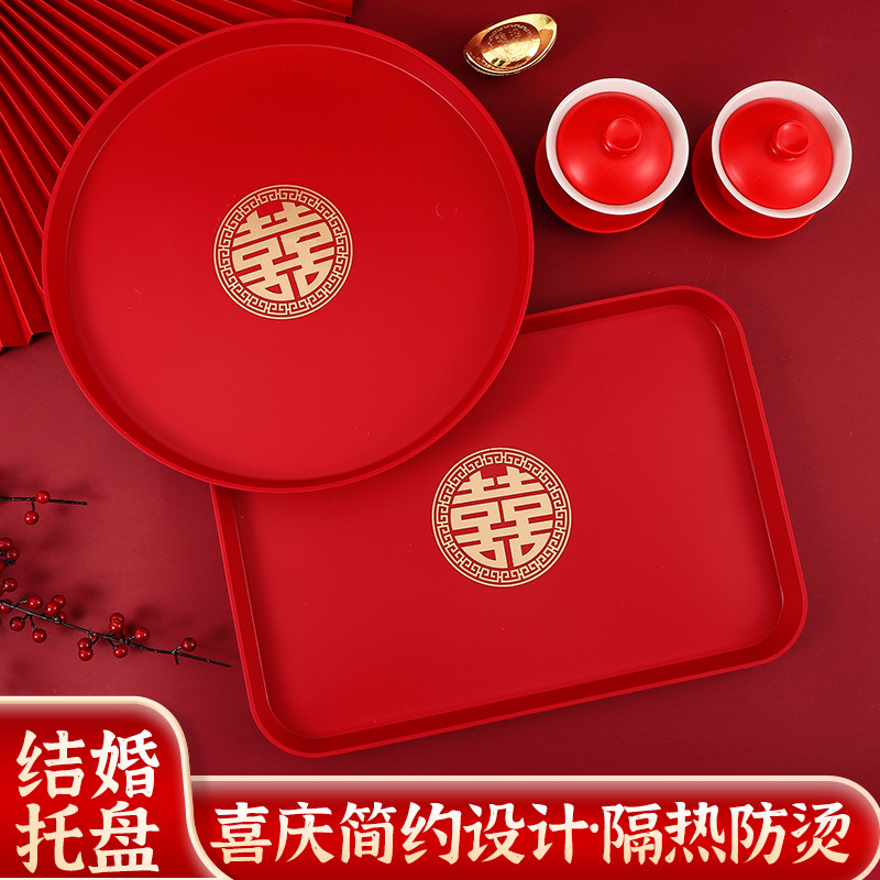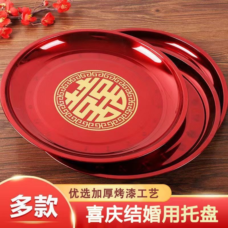 茶皿ウェディングトレー赤円盘新人敬茶皿円形鉄皿结婚円盘结婚式フルーツ皿百合皿