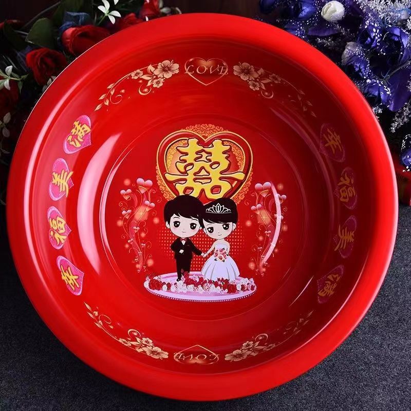 結婚祝い結婚洗面器厚手喜字新婦嫁入り喜慶紅盆結婚式鉄エナメル赤盆36 38 40cm